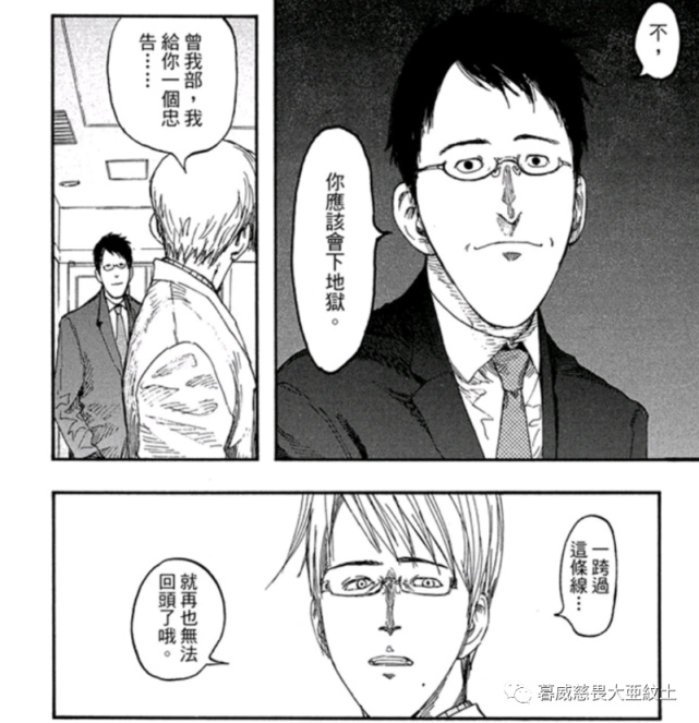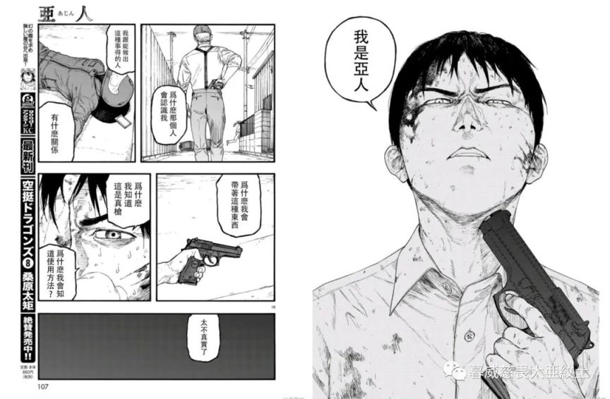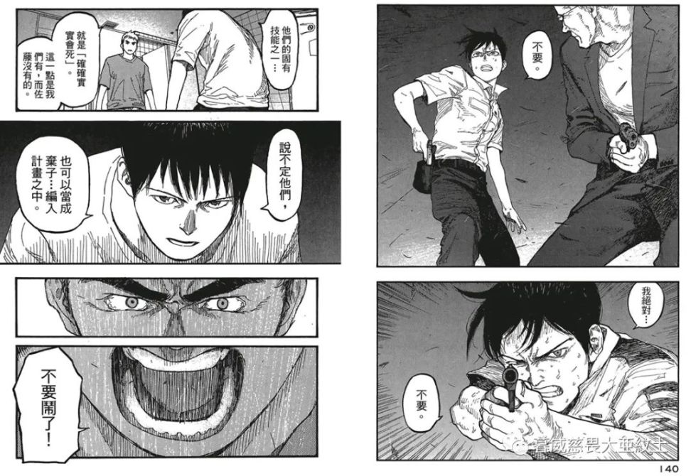 回头一看,哈!已经夸了那么多,那就顺带再说说我认为不好的地方,可能是因为前期的大纲没有定好,《亚人》的前几卷塑造的远没有后面几卷那么优秀,甚至前后有不少隔阂。