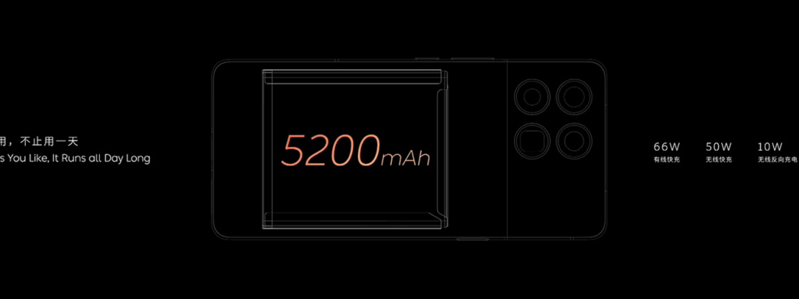 蔚來 NIOPhone 擁有 5200mAh 大電池,支持 66W 有線充電 + 50W 無線充電 + 10W 無線反向充電。
