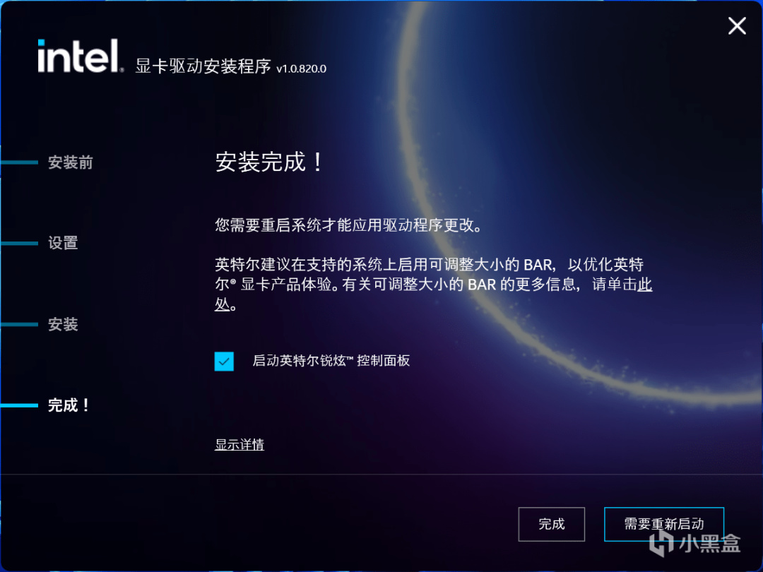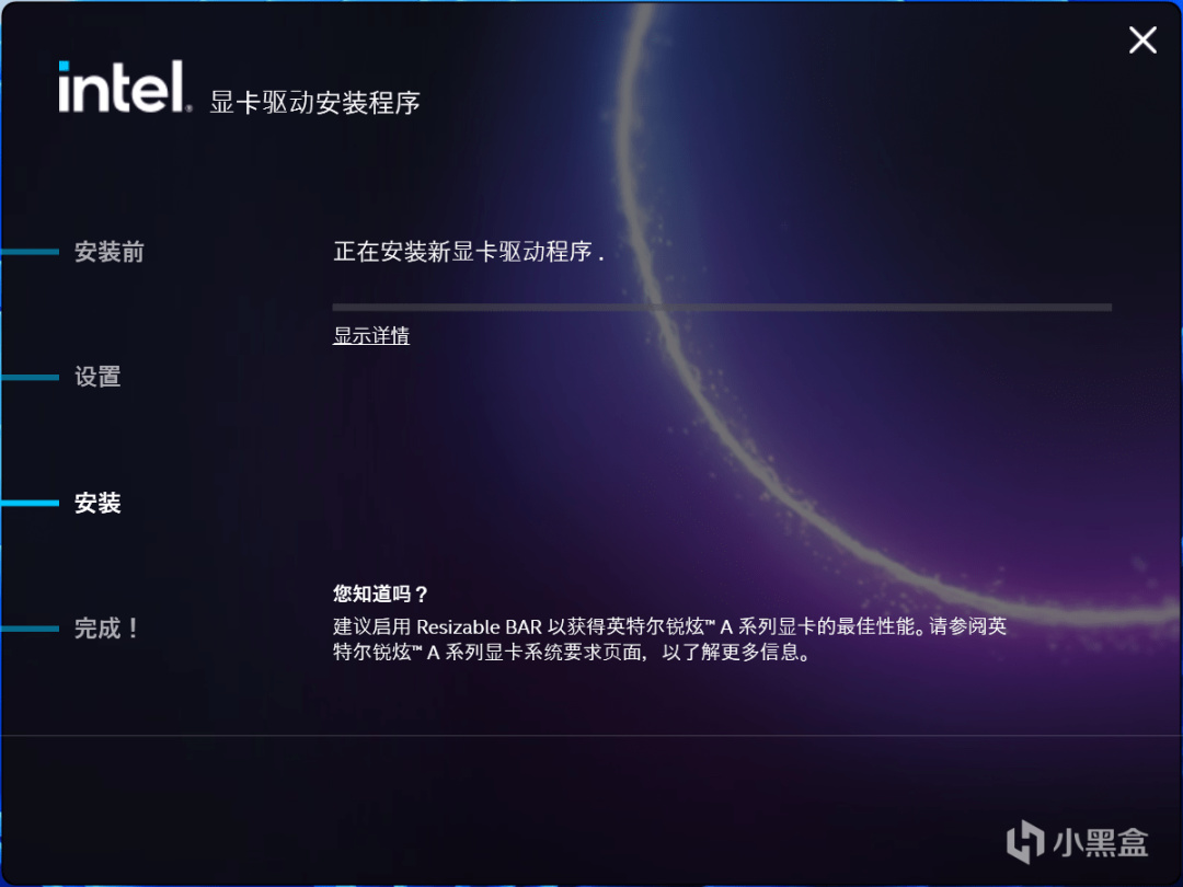intel ARC顯卡的安裝驅動界面很有設計感,對了大家記得在主板BIOS開啓Resizalbe BAR,這樣才能完全滿血發揮A770 16G的性能。