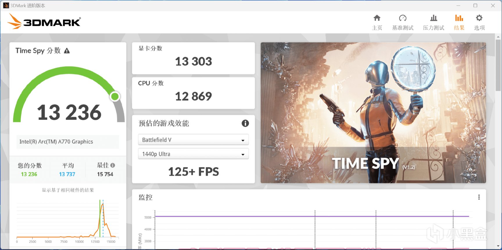 Time Spy分數13303,達到1.3W分水平,比我以往用過的幾張顯卡都要強。