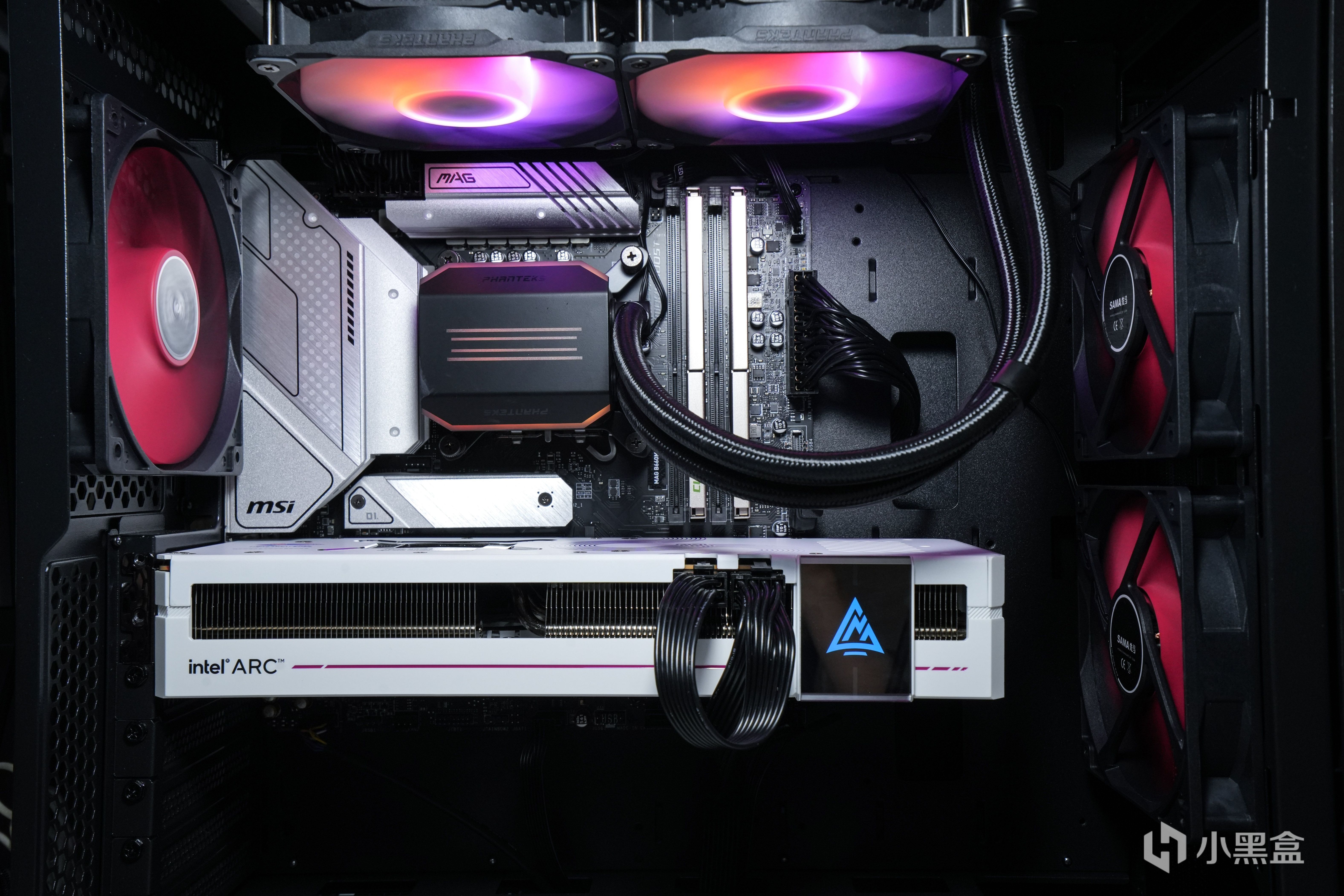我這臺選擇了一個黑白配,混搭的效果哈哈也不錯。白色顯卡其實不一定非要全白搭配的嘛,如果你的機箱是黑色用白顯卡也完全OK的嘛。