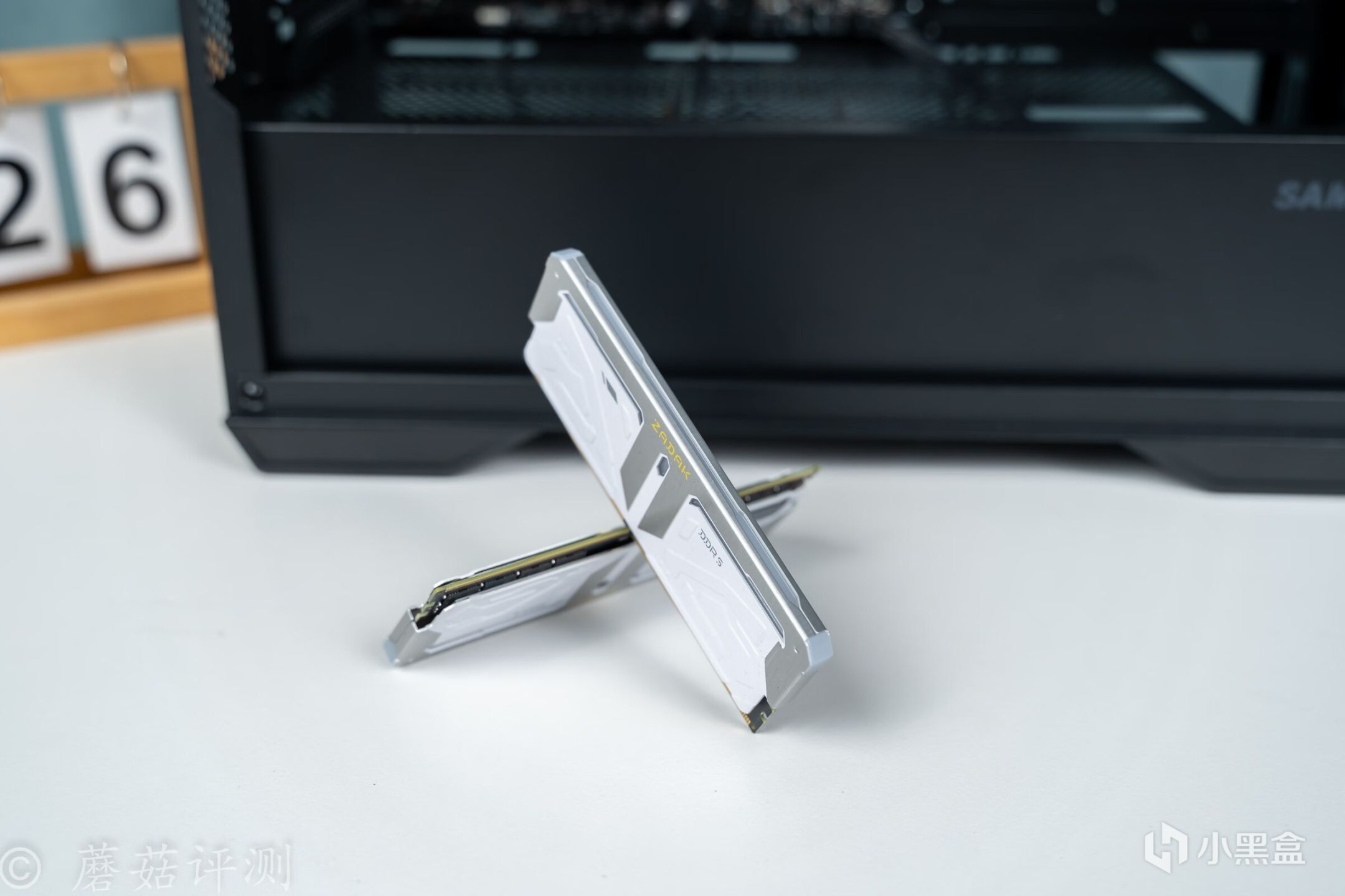 ▼内存用的是宇瞻的ZADAK的SPARK内存,这套内存的金属马甲设计的很有意思,采用两种不同的表面处理。侧面大面积用的是白色涂装的金属百家,内存条顶部用的是银色的、金属拉丝质感的马甲,搭配一起的效果不错。