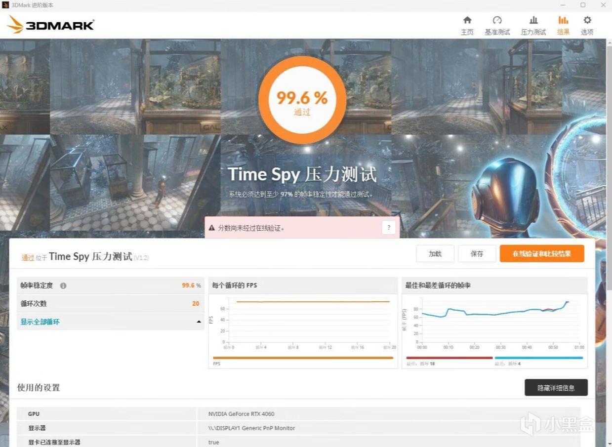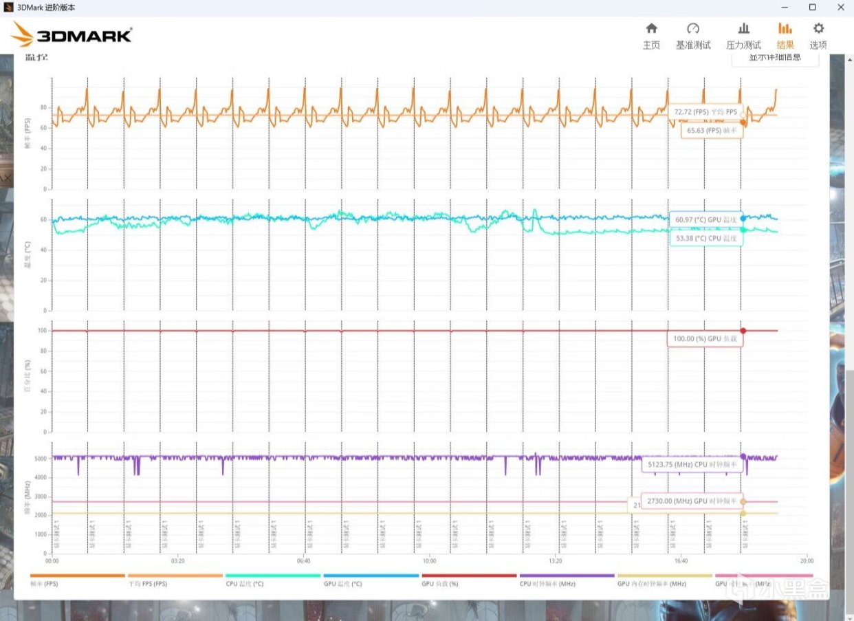 ▼简单跑个3Dmark的压力测试,TS模式,帧数稳定率在99.6%,非常稳定。