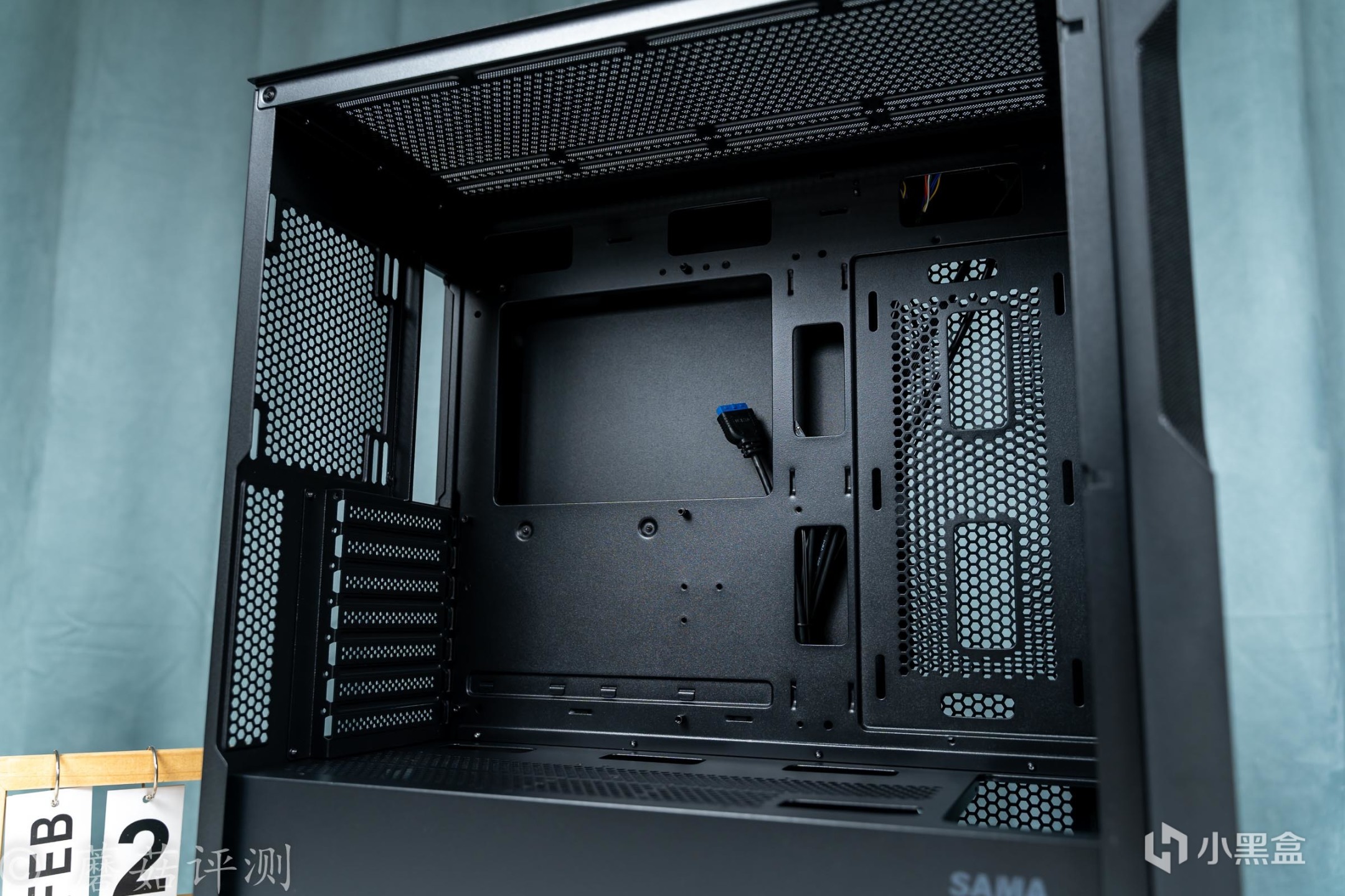 ▼机箱背面设计的也很有意思,背线空间表现不错,也有很多理线扣。