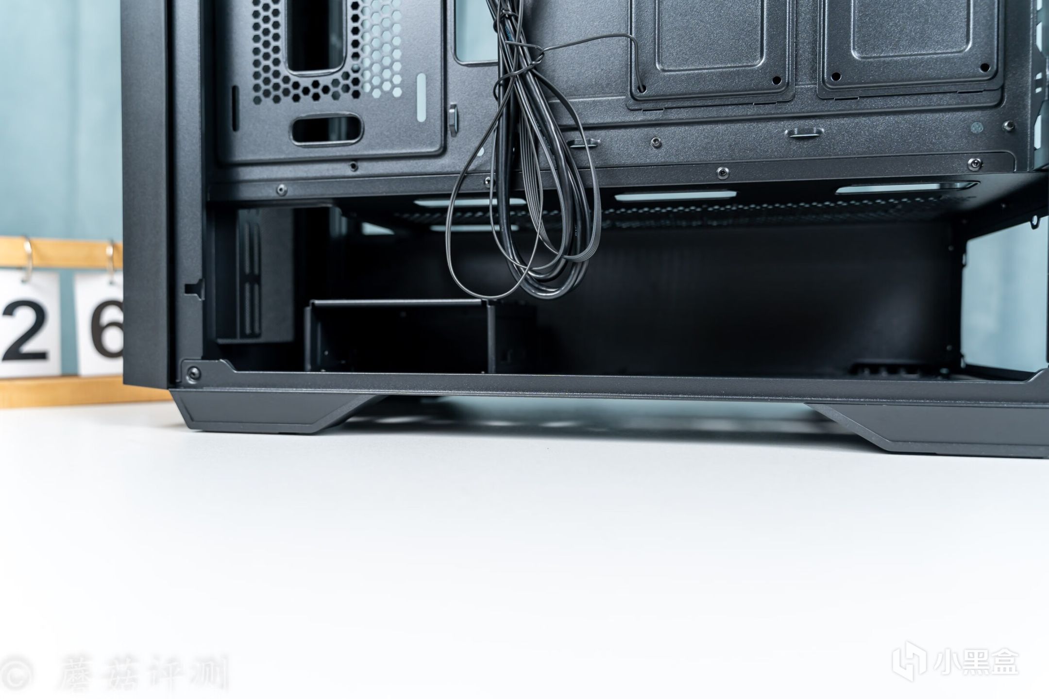 ▼机箱底部是独立的电源仓,左侧有一个3.5英寸硬盘的固定位。