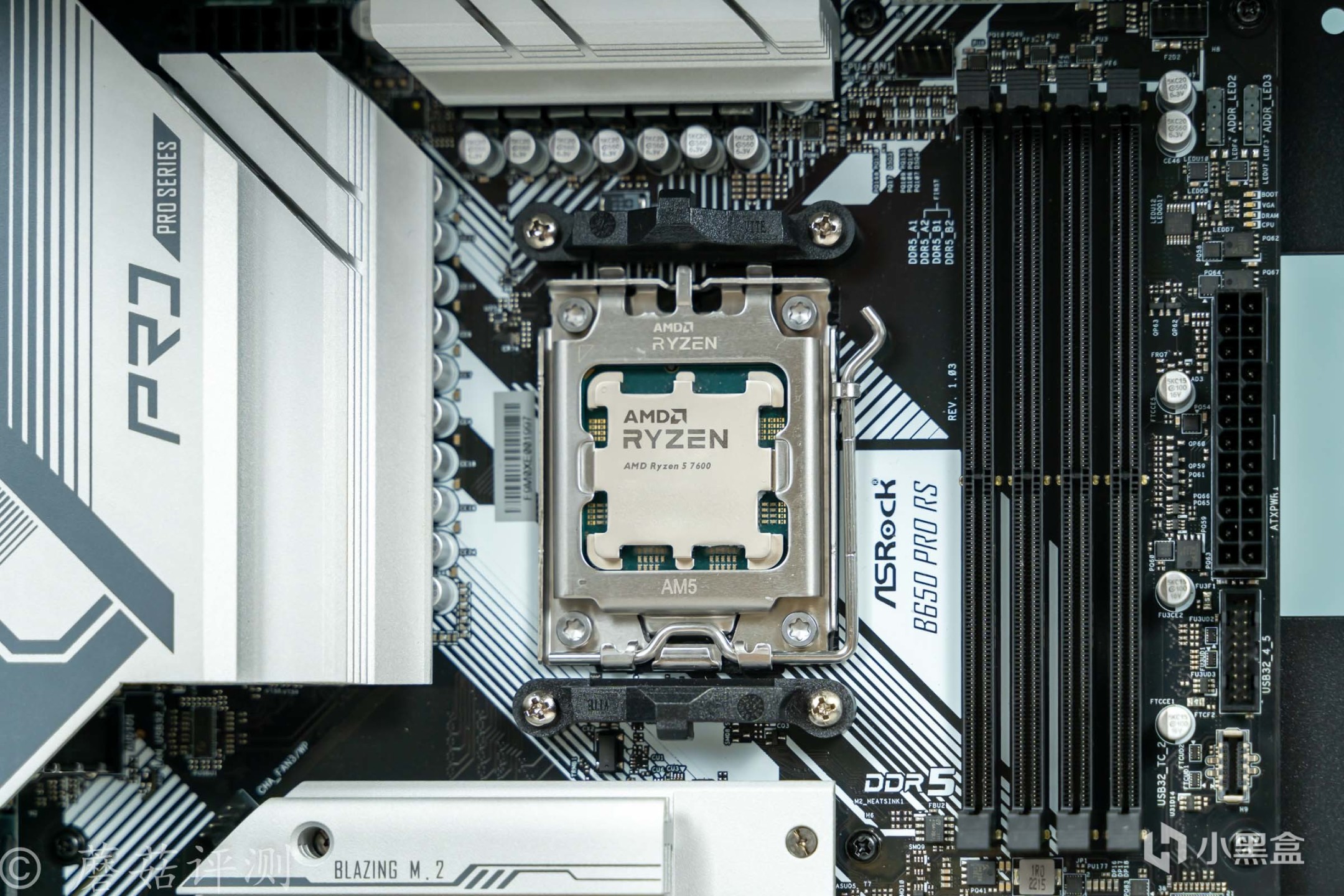 ▼华擎的这块B650 Pro RS主板的供电部分有完整的金属散热件覆盖,金属件表面有漂亮的涂装,细节很精致。