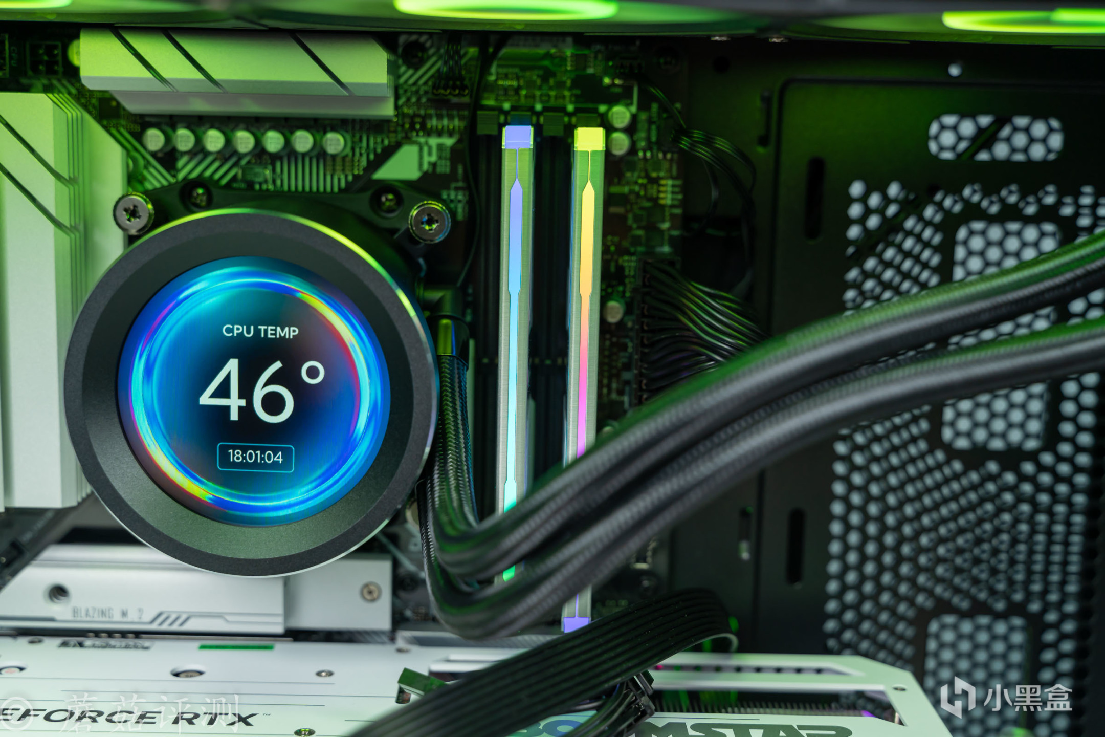 ▼散热用得是先马的XW360-P,这款水冷的颜值更加漂亮,相比之前的水冷产品而言,其采用了一块更大的、2.8英寸的屏幕,显示面积更大,视觉观感更加的震撼。