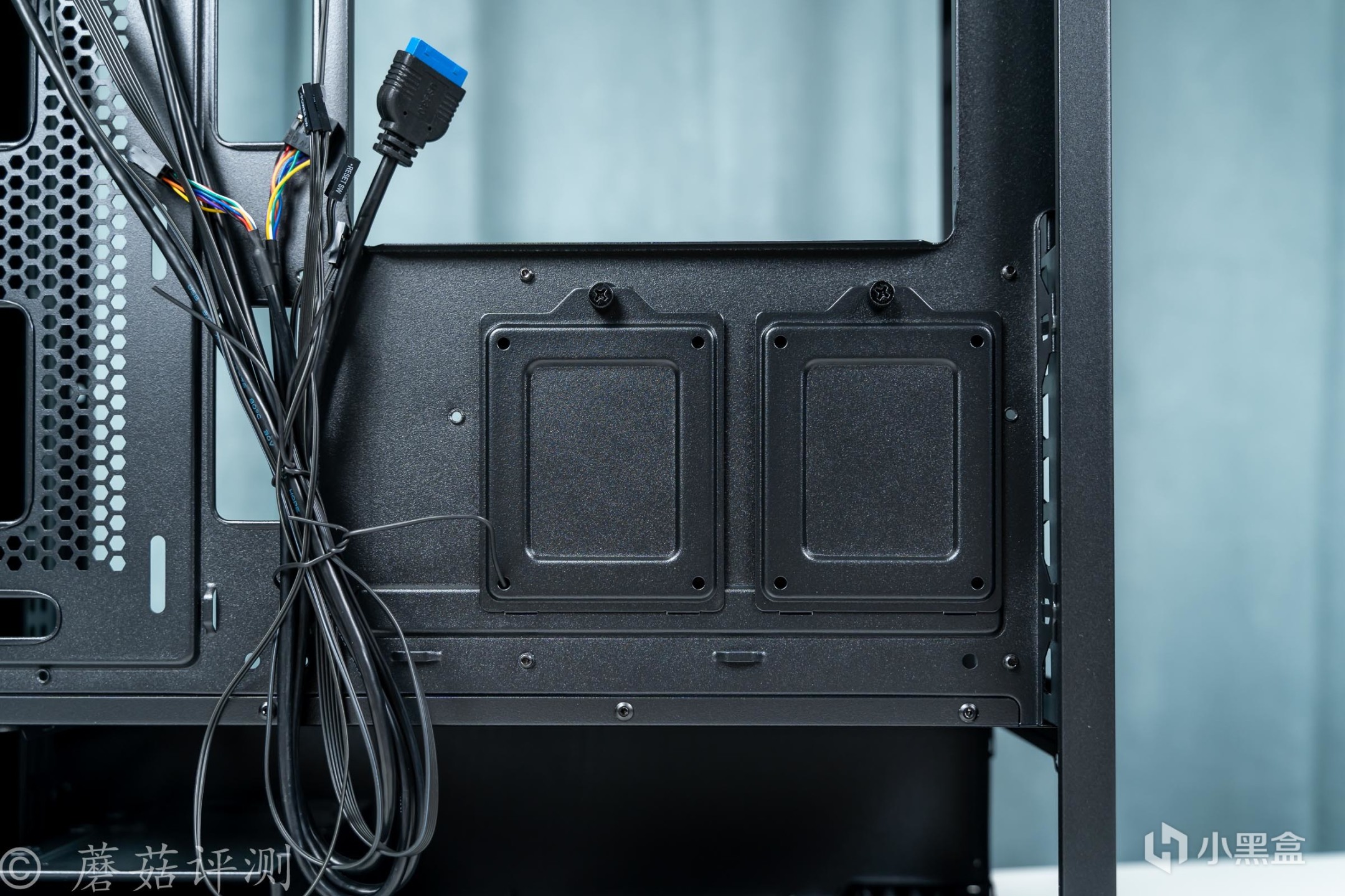 ▼右侧是两个2.5英寸硬盘的固定位,可以在这里安装固定一些SATA固态之类的。