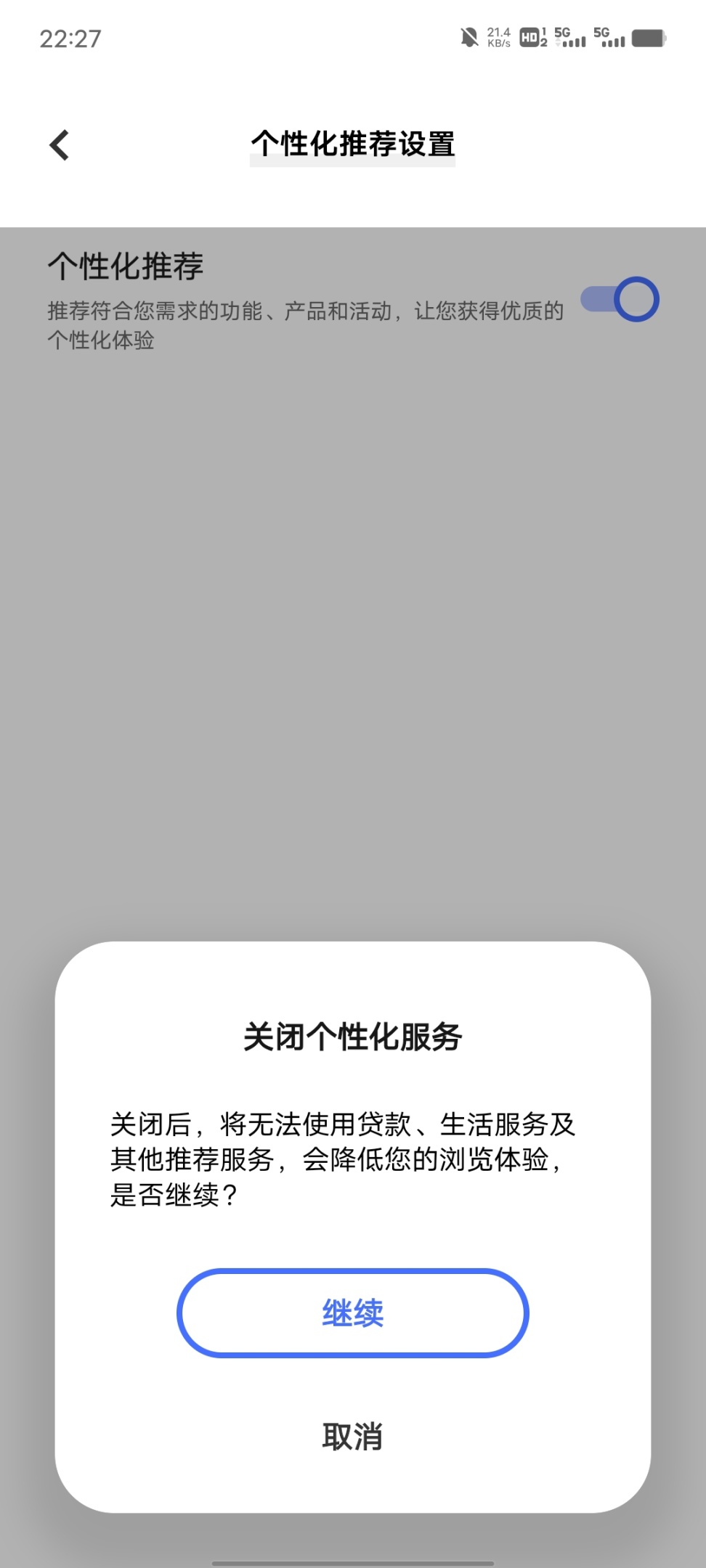 ✑浏览器设置→隐私权限设置→个性化服务(关闭)