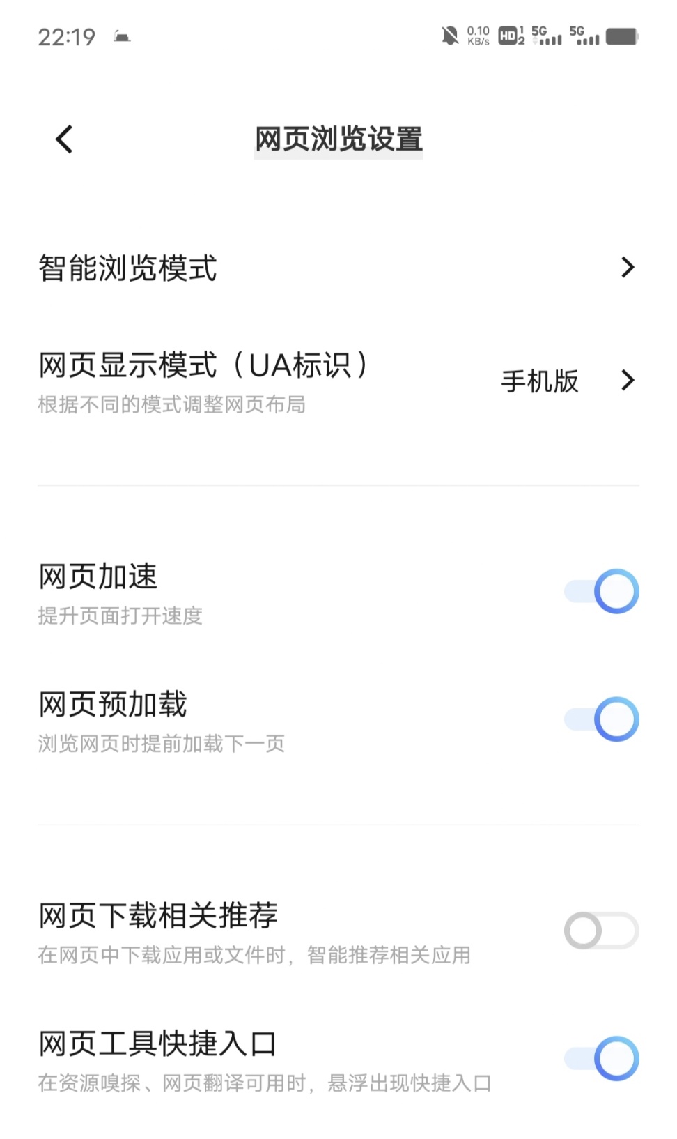 ✑浏览器设置→网页浏览设置→网页下载推荐(关闭)
