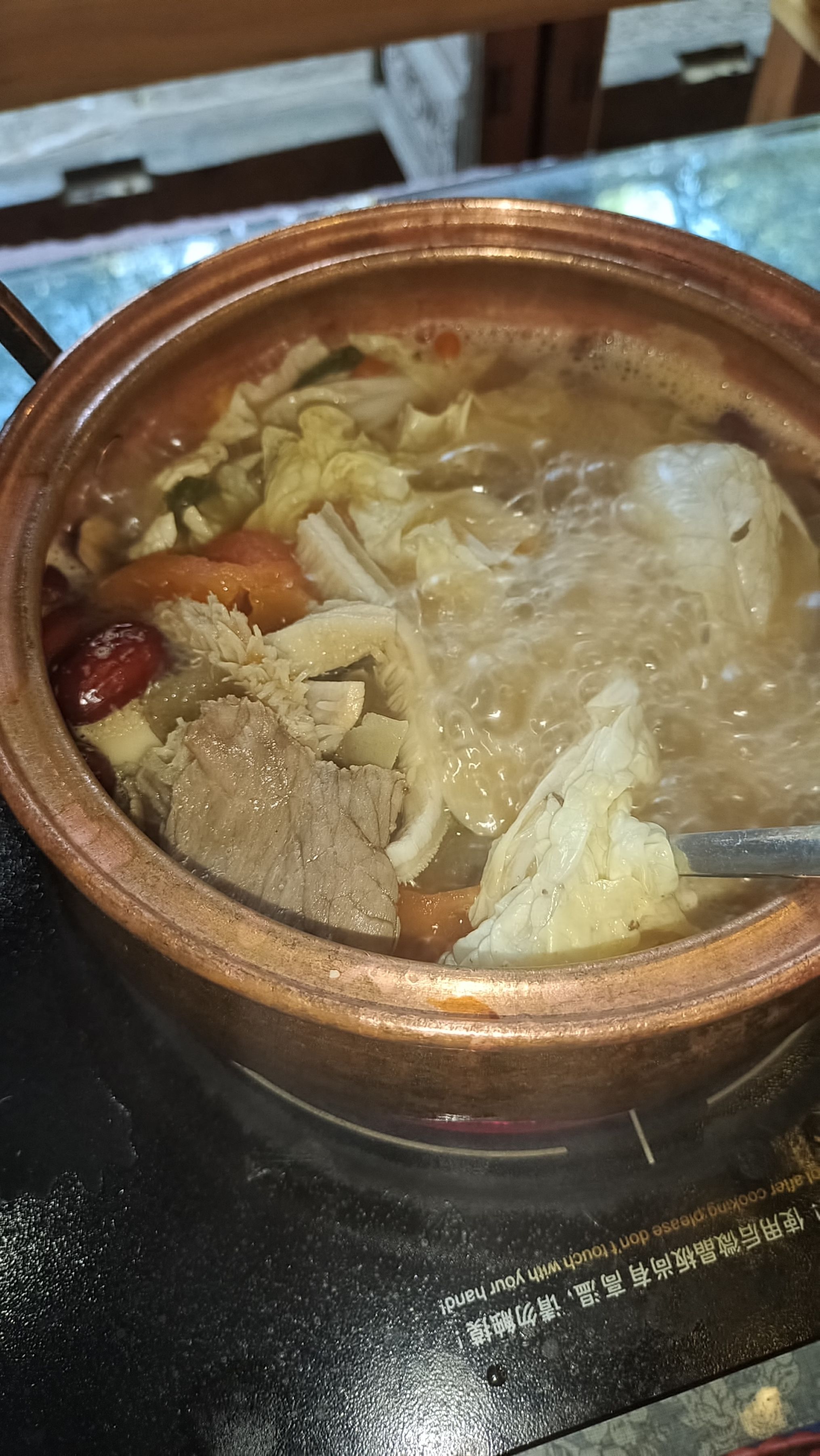 是店裏特色菜,端上桌後進行燜煮,並且服務員叮囑最好在五分鐘內(給了個沙漏)喫完口感最佳。
