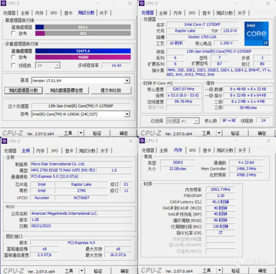 Z790EDGE TI MAX这里的初版BIOS,默认13700KF下的CPU测试成绩