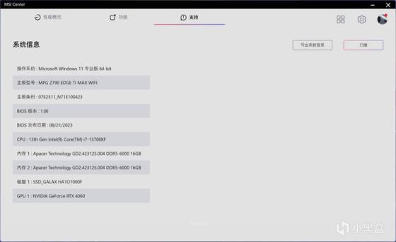 调整完之后则是进入操作系统使用微星的MSI CENTER进行监看调整,软件也是非常方便的