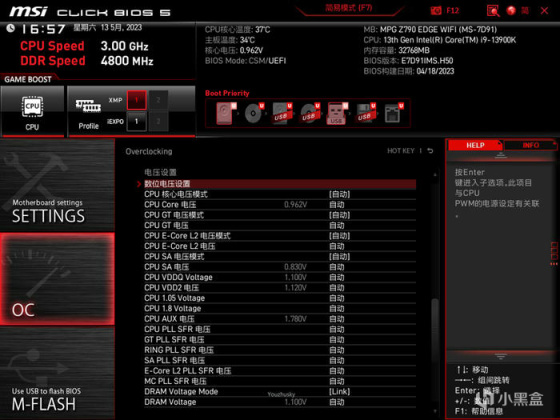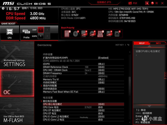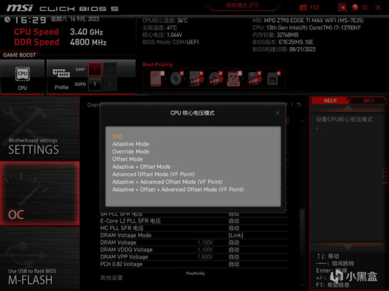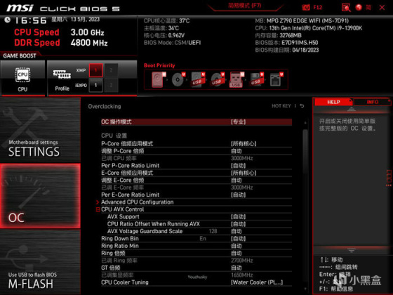 OC超频选项可对CPU的性能核、效能核、倍频、AVX、倍频等等的调整