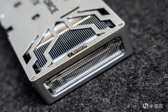 供电散热另一端的VRM扩展型散热片,其规模一点也不输于主散热片,厚度一致以及锯齿开槽辅助散热规模也一致