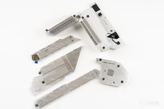 散热器尾部的散热鳍片,这款寒光星散热系统采用2根6mm镀镍复合热管和大面积高效能均热板和鳍片、回流焊接工艺,以及金属大师传承的金属外壳