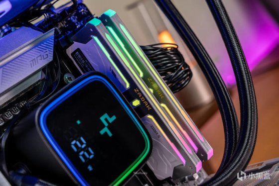 内存银白风格,与Z790 EDGE TI MAX也是相得益彰,顶部的ARGB导光条也是衬托了灯效