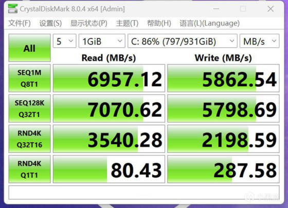 影驰HOF EXTREME 30 1TB固态硬盘在最后一条PCIE4.0 M.2中的测试成绩也符合其性能