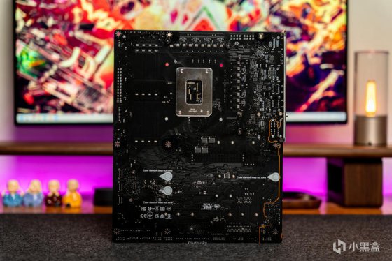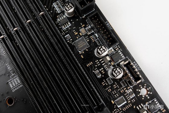 从主板的背面也可以看到新一代DDR5 与Linghting GEN5 之后,大部分的元器件都已经升级为了SMT工艺,而内存与PCIe插槽也都更新了安装方式,使得电器性能更高