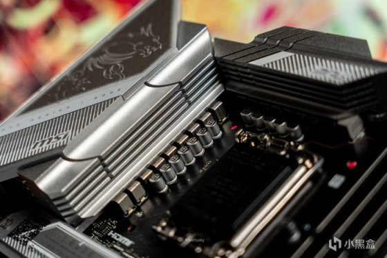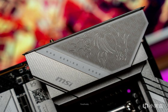 这个硕大的带龙盾徽标的扩展型VRM散热片,中间标注了MPG SERIES | EDGE
