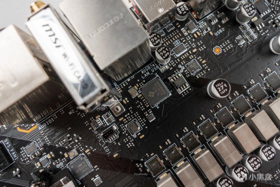 背板IO内部这里的芯片,有S2223L35芯片,是intel的2.5GLAN ;RTS5436I芯片,是REALTEK的支持PD3.0的Type-C供电控制器;GL3523芯片,是Genesys Logic的4端口USB 3.1 Gen 1的集线控制器;ASM1543芯片,可实现 Type-C 口正反盲插