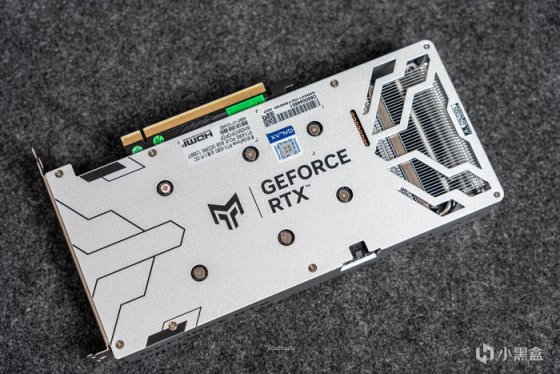 显卡的背板也依然是铝合金设计,尾部一段镂空散热,中间是一个金属大师的logo和GEFORCE RTX