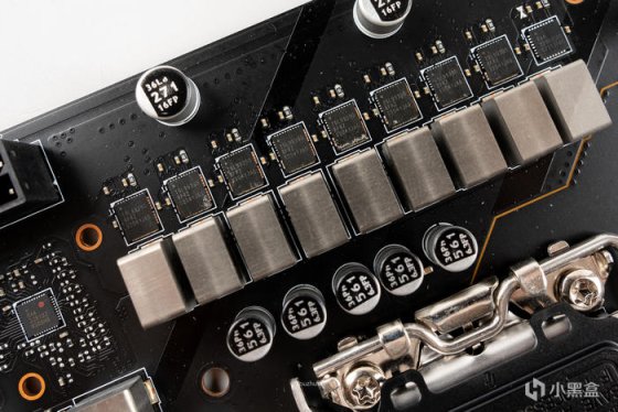 两片散热规模都是一样的开槽,底下则是16+1+1的供电规模以及第三代钛金电感