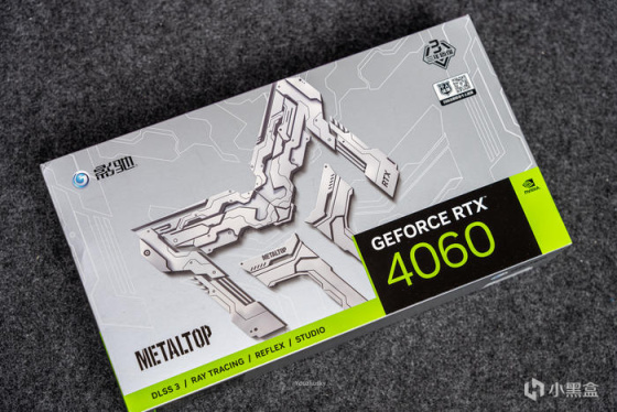 Geforce RTX 4060 金属大师 OC ,一如既往的银灰色包装和3年质保和个人送保标签、METALTOP金属大师logo、英伟达绿色GEFORCE RTX 4060 logo,中间则是大大的金属大师的logo