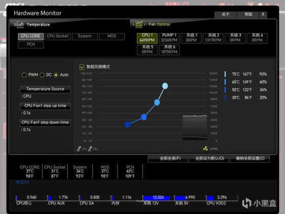 硬件监控是最直观的调整主板CPU、PUMP、系统风扇的各个控制曲线