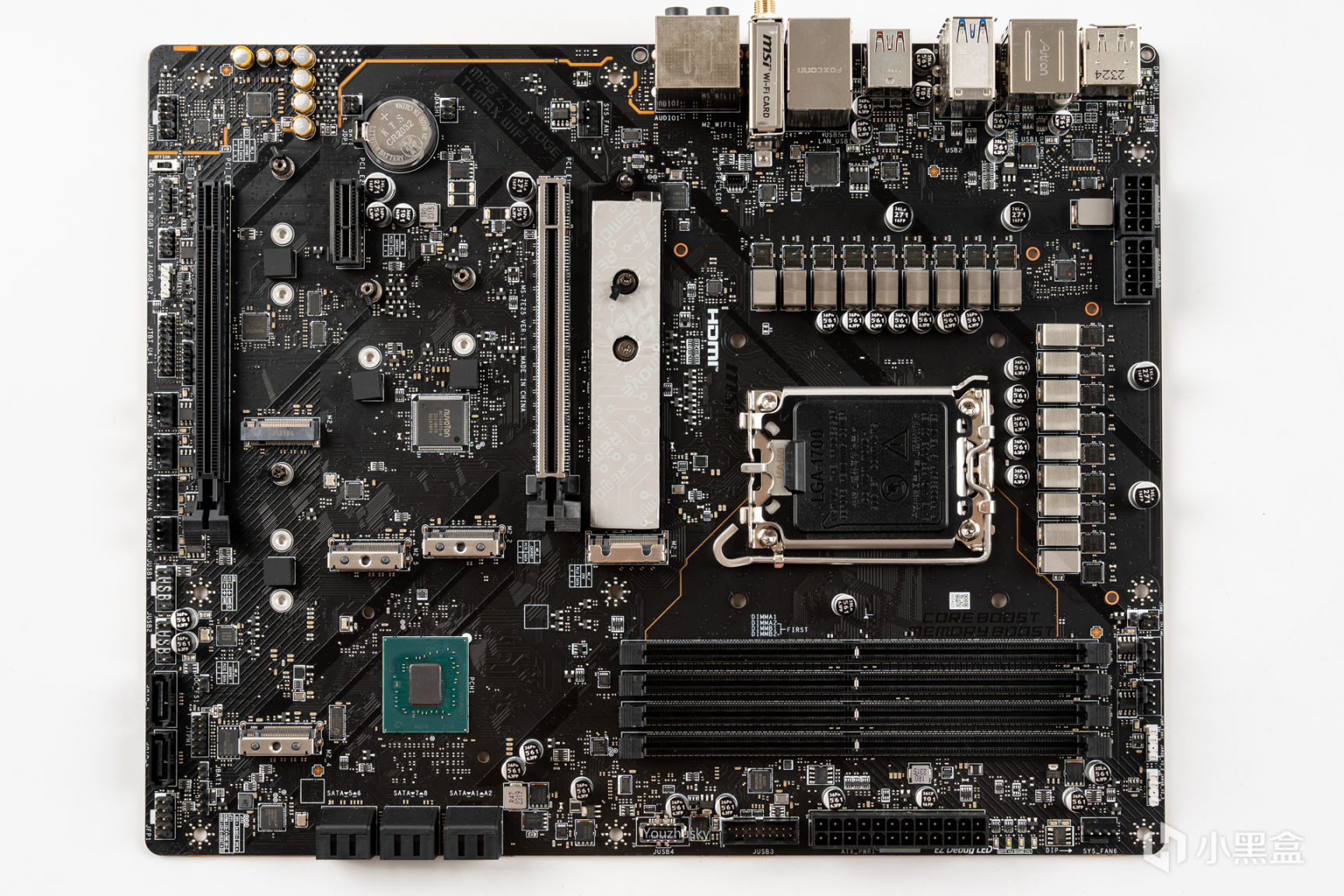 取出主板,这主板的分量真的是又重了,这不仅仅是主板中核心供电的扩展型散热片加粗加厚,更是加入了热管连接,以及主板板载5条M.2以及M.2散热盔甲,使得这块中端主力超频主板拥有了越级成为高端的能力