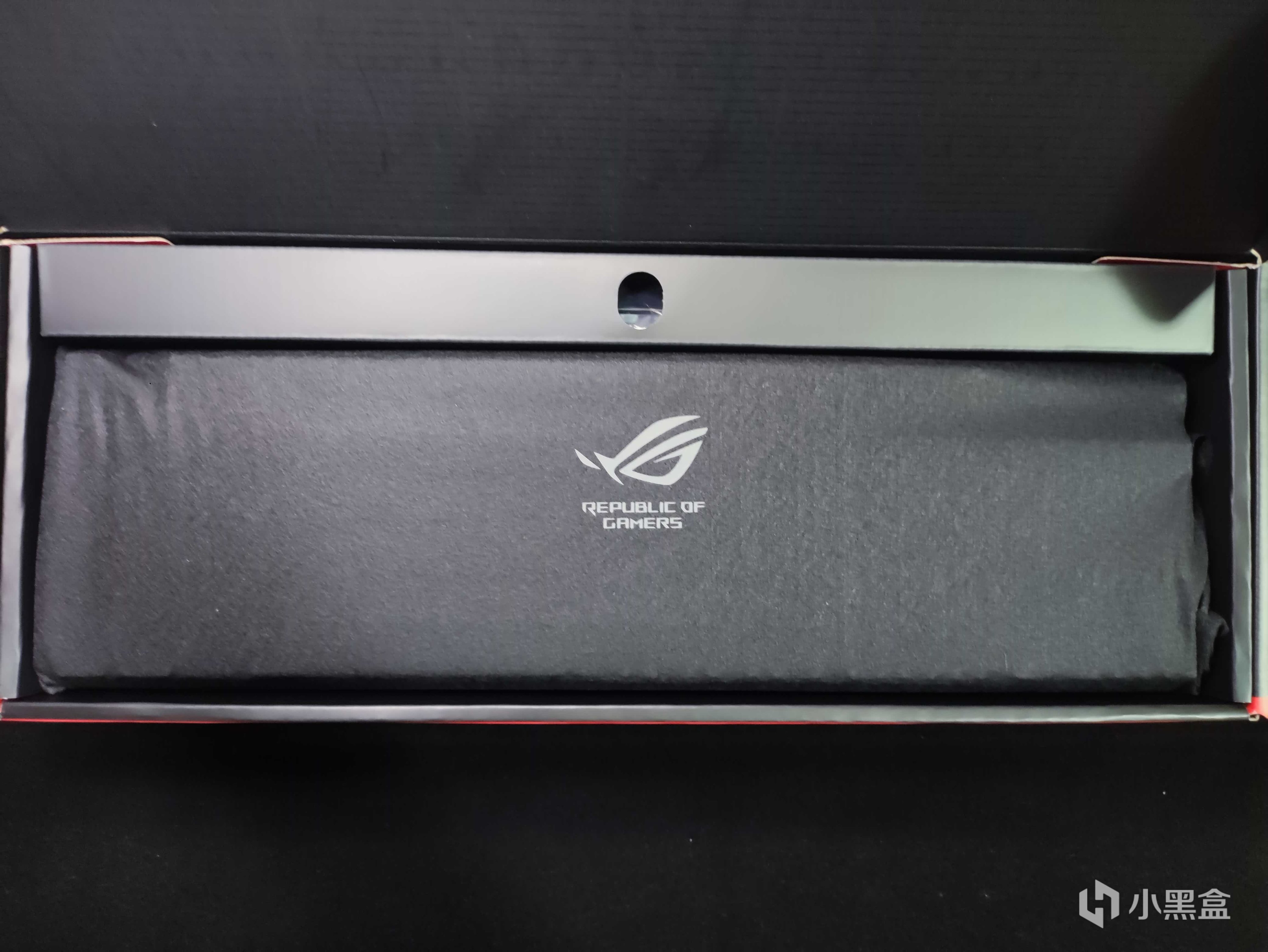 打开外包装可以看见被黑色绒布包裹的键盘。