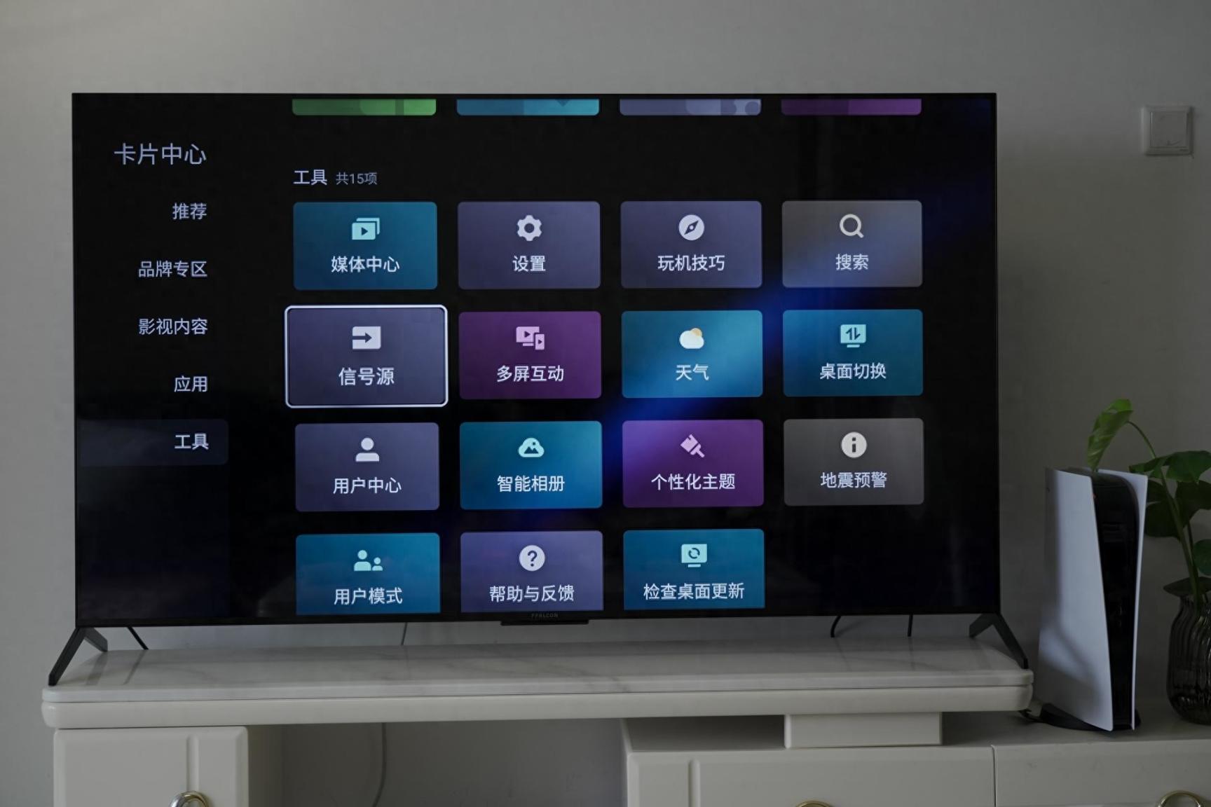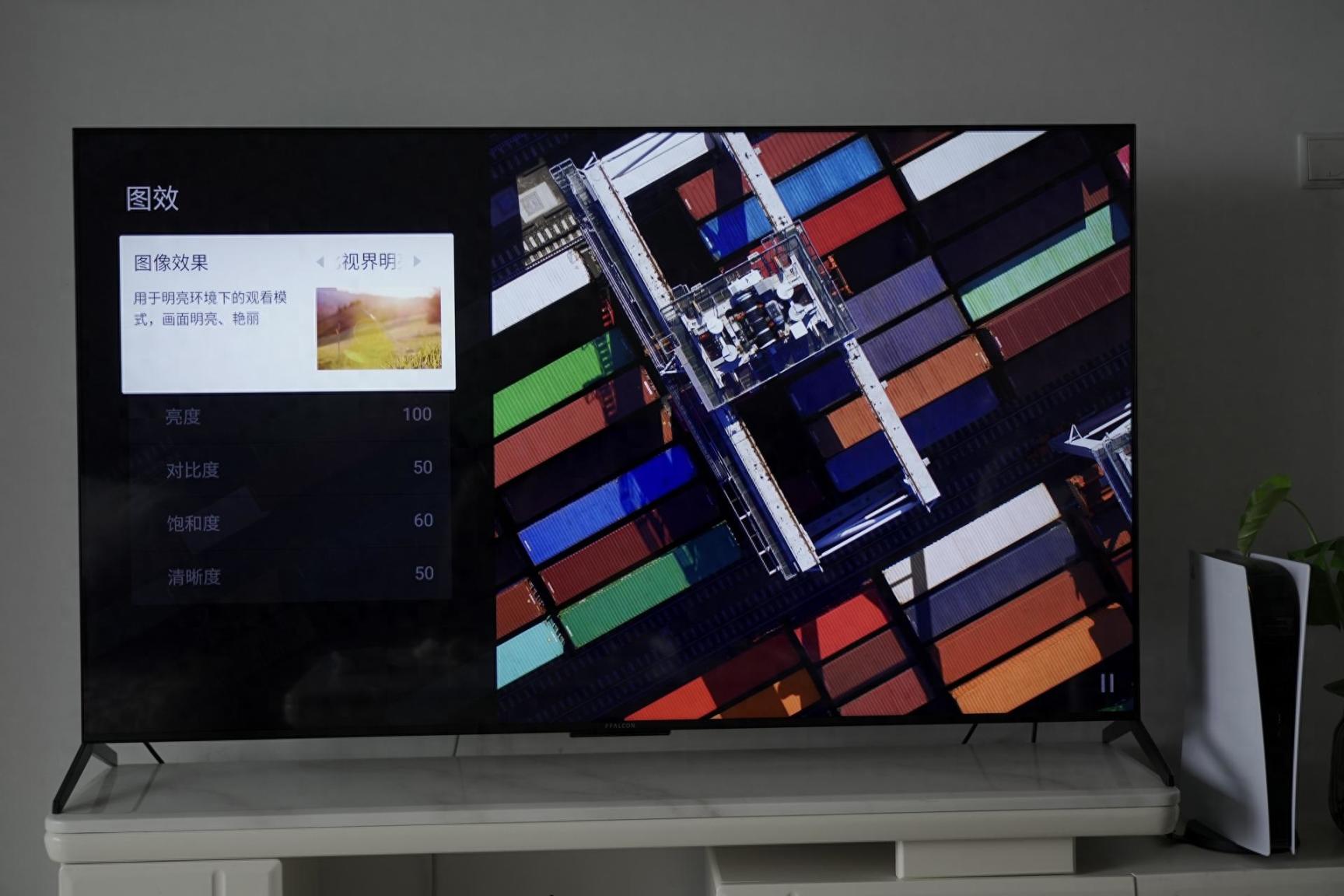 由于是租的房子,所以电视柜的长度我是真的没想到,恰恰够用,不过也能用了,我还接了芝杜Z9X PRO电视盒子,还有PS5,整体效果如上。