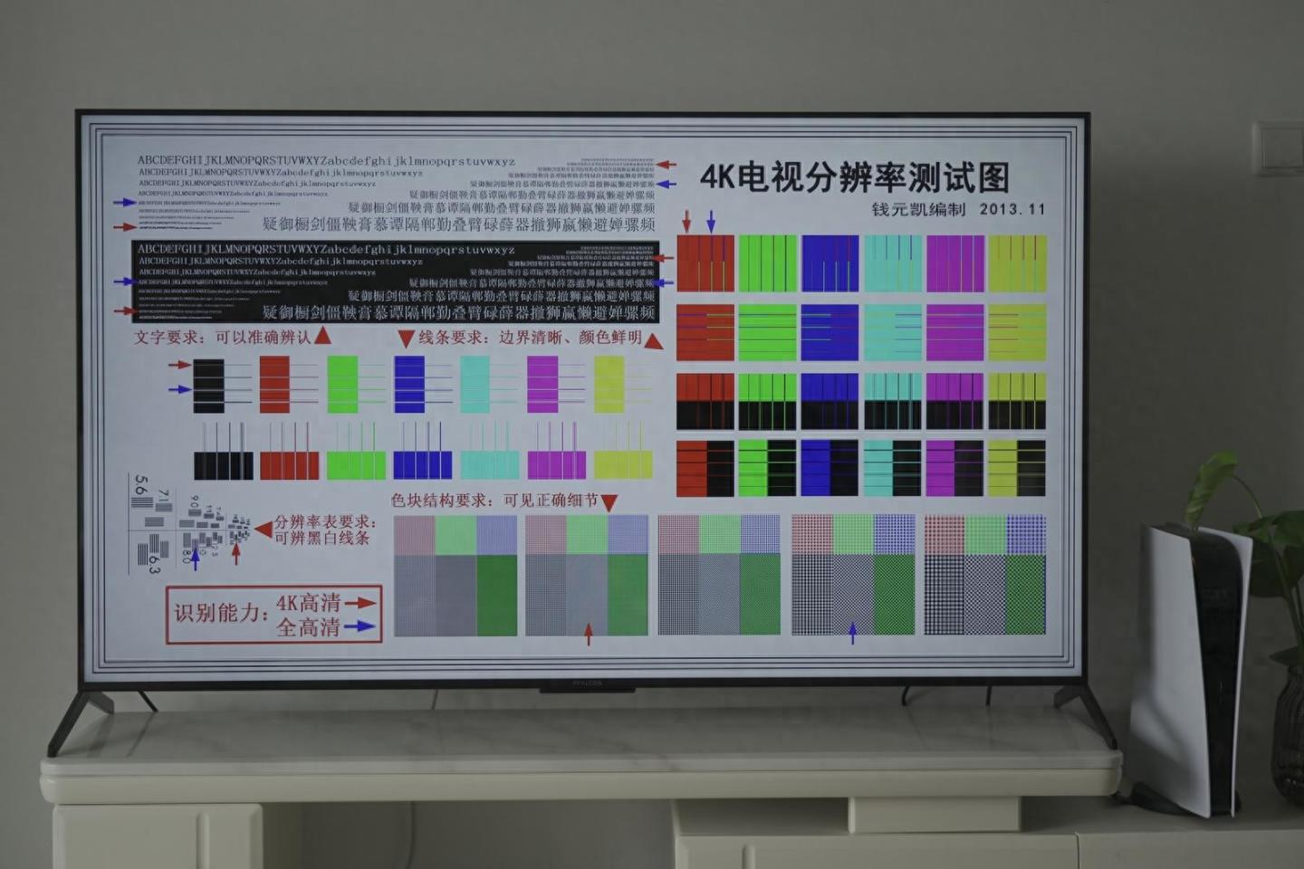在4K电视分辨率在测试图中可以看到细节辨认极其清晰,屏幕素质极佳。