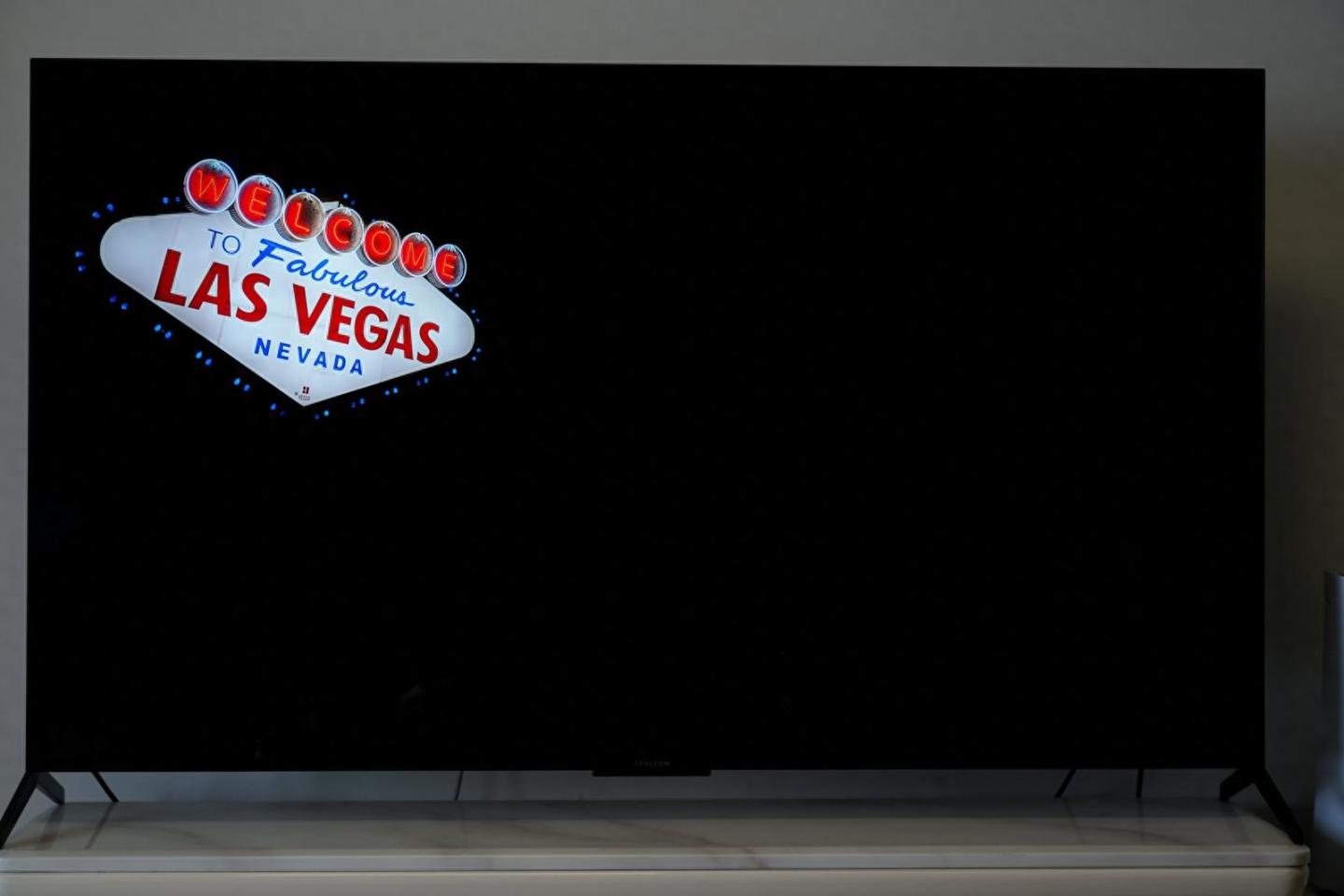 可以看到在4K杜比视界的画面里面,拉斯维加斯夜晚黑色的部分极其纯粹,没有一丝漏光,MiniLED屏幕对比度极其惊人!