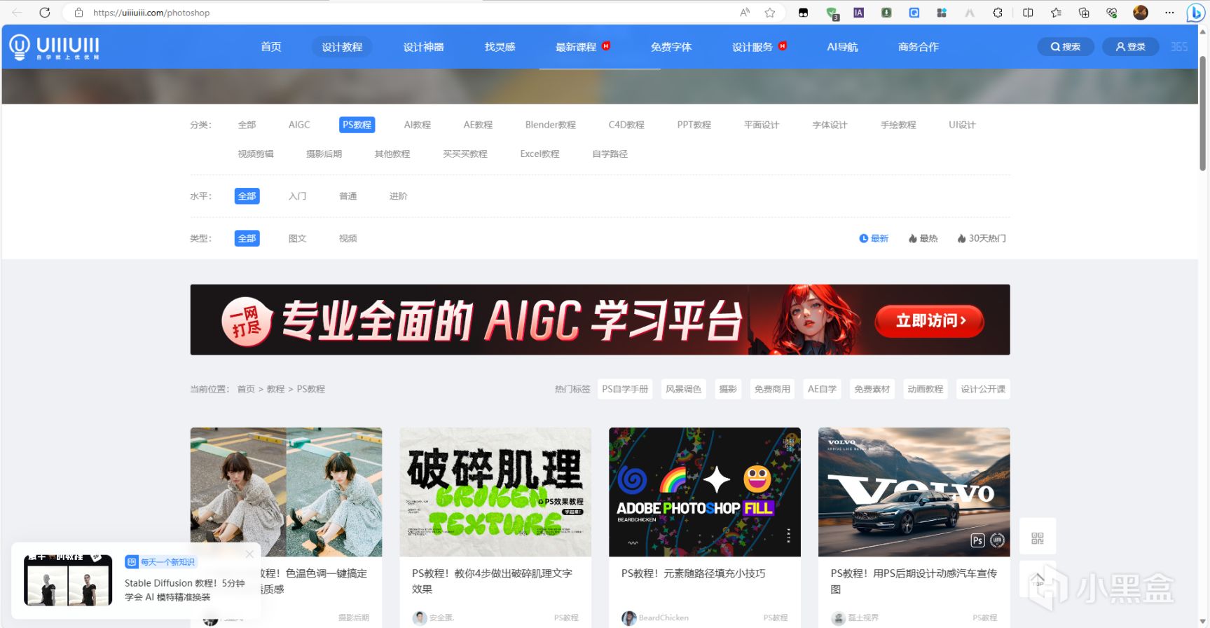 这个网站涵盖了各种主题和难度级别,从入门到普通再到进阶。其中一些PS教程的主题包括:基础操作、图像处理、特效设计、插画制作、UI设计、合成和后期处理等等