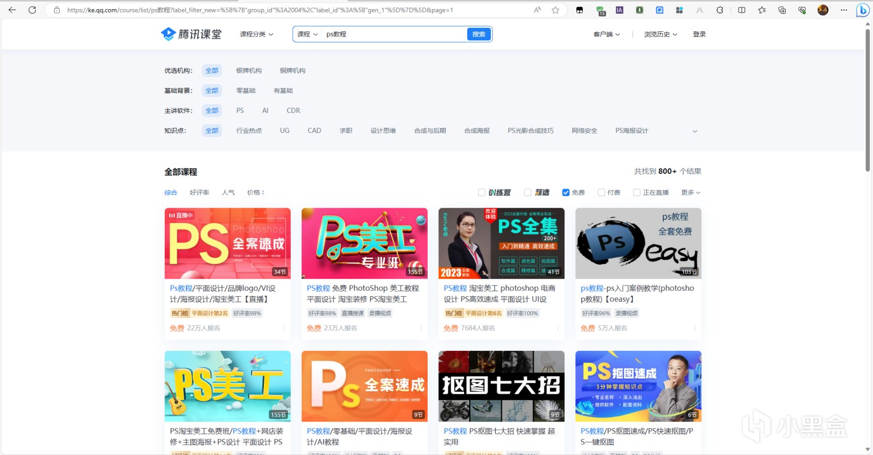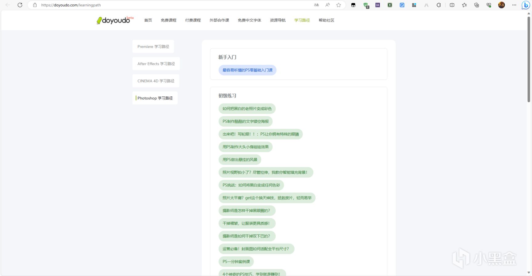 这个网站太熟悉了啊!一个大型的在线教育平台,提供丰富多样的在线课程。在这上面有各种类型的PS教程可以免费学习,比如基础操作、海报设计、平面设计、色彩调整、照片修复、制作酷炫的特效等