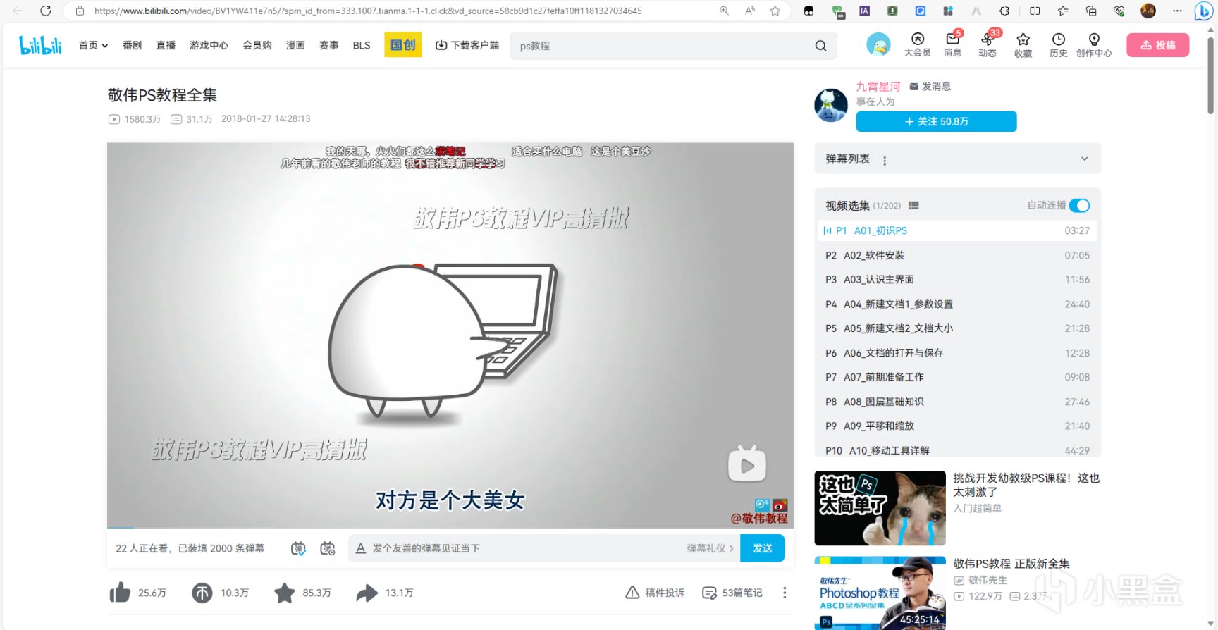 众所周知,哔哩哔哩是一个真正的学习网站。在B站上有一个非常知名的PS教程,敬伟PS教程,其播放量到达了1580.3万次,该教程涵盖了PS软件基础、所有常用工具讲解、图层样式、混合模式、调色课程、高级抠图、滤镜的应用以及实战案例操作。当然,还有很多其他UP分享的PS教程哦!