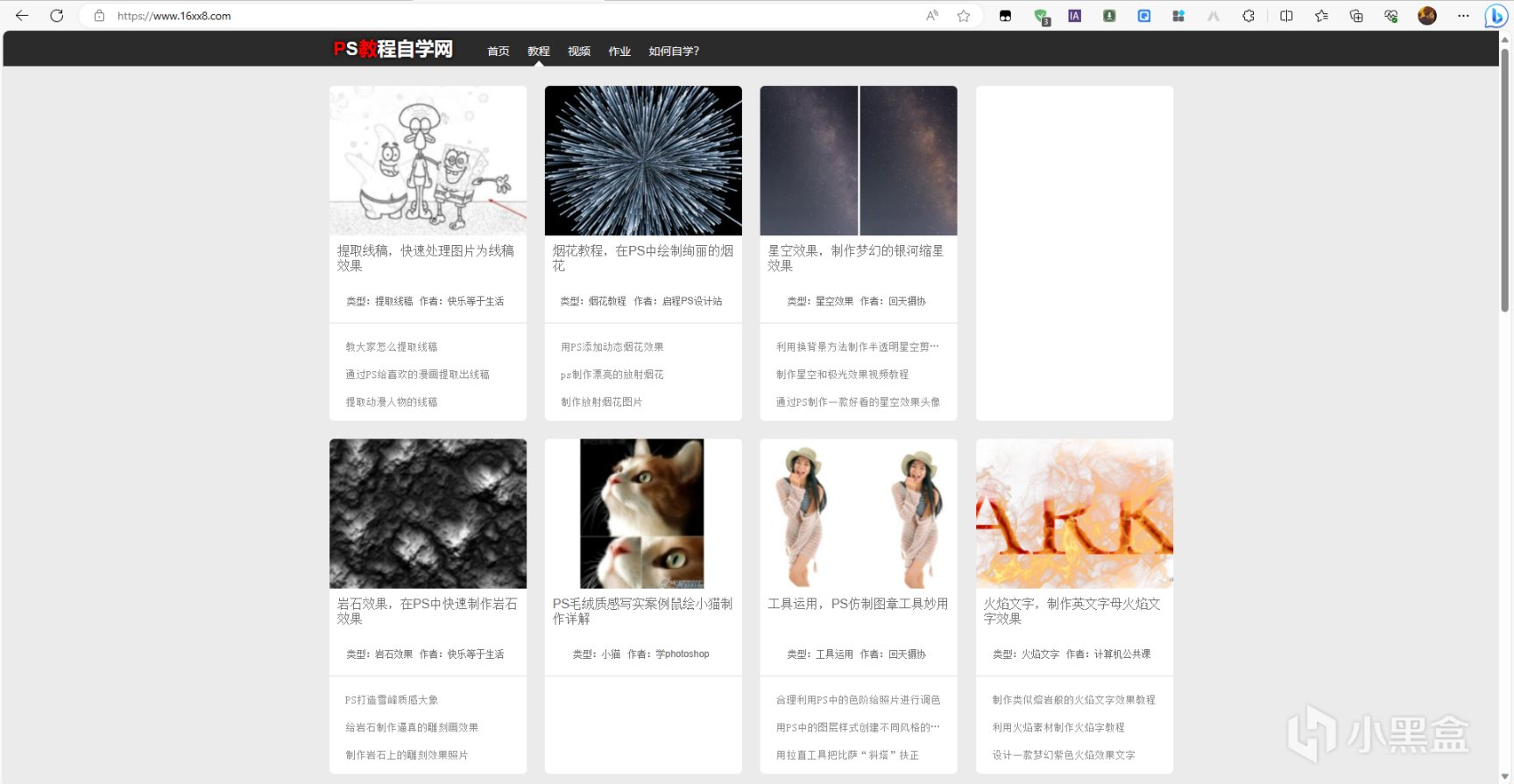 这个网站呢有许多分类的教程,如:基础教程、滤镜教程、文字特效、美化教程、调色教程、图片处理、抠图教程、合成教程、修复教程(数了一下,有13个,每个教程下还有不同的子教程)