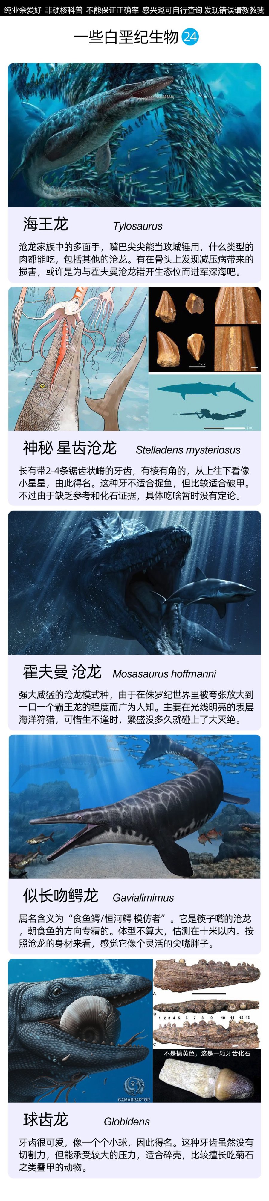 这期基本是晚白垩纪地狱水族馆里的各种海爬,包括最广为人知的沧龙。