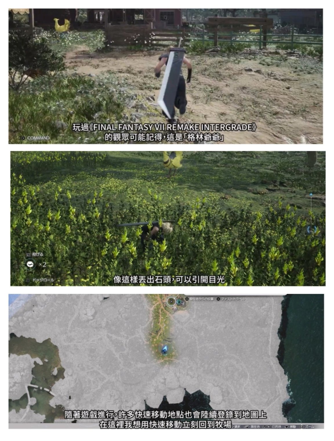 还有我们看到了游泳的环节,在这个游戏中,玩家可以游泳到不同的地方,但是需要注意氧气量的消耗。而无缝进入陆行鸟牧场则让玩家们眼前一亮,这个牧场是玩家们培养陆行鸟的地方,也是探索游戏世界的重要工具。