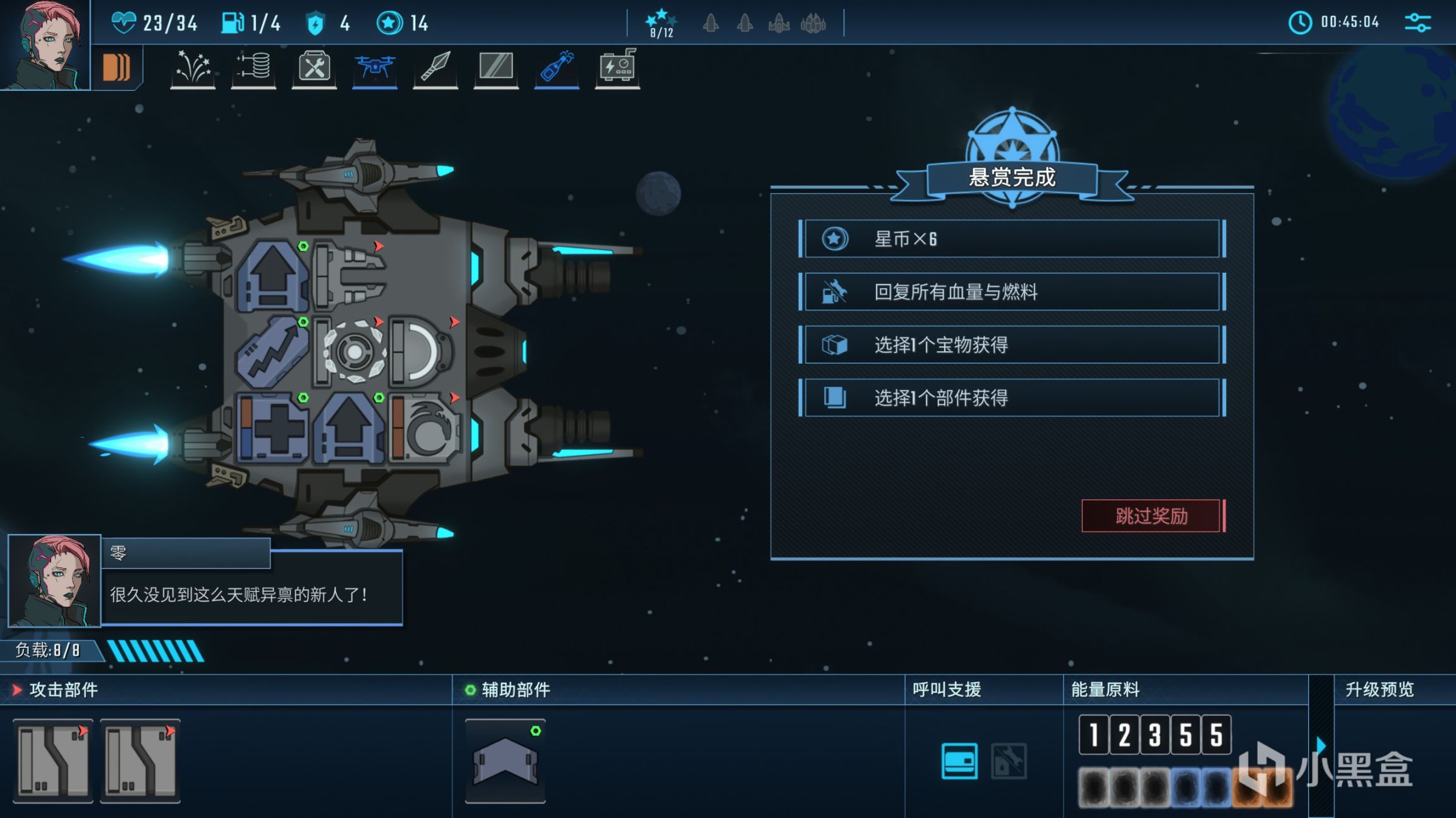 战斗获胜以后会固定获得燃料、星币(可以呼叫出商店购物,每局游戏一次)、部件,击败精英后会获得部件位置上限,击败BOSS还会获得随机宝物(精英级以上)。