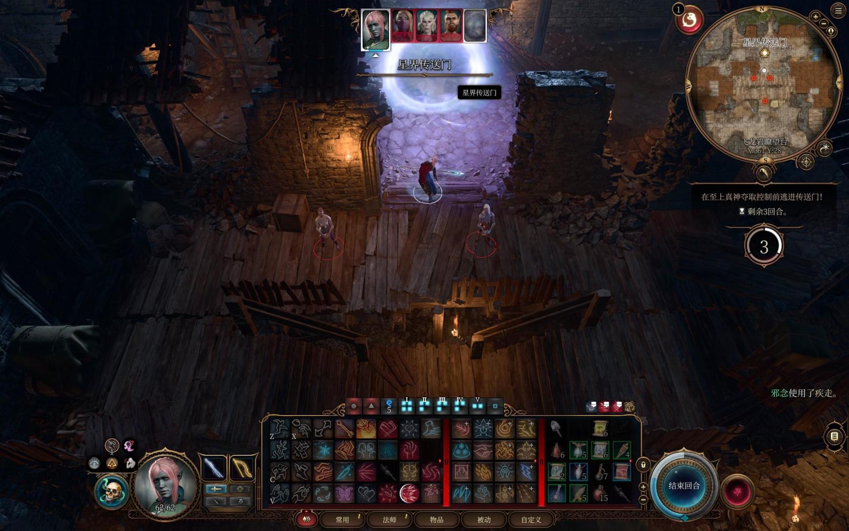 到了第三章其实就不需要什么攻略了,现在我们的强度就能去打主脑战,打第三章大部分的战斗也都是碾压。不过我们还是要水水字数,后续写一下进博德之门后的思路,和部分战斗的对策。第三章初的战斗不算太难打,开局面前三个人不要管,直接迷踪步加疾跑进传送门。