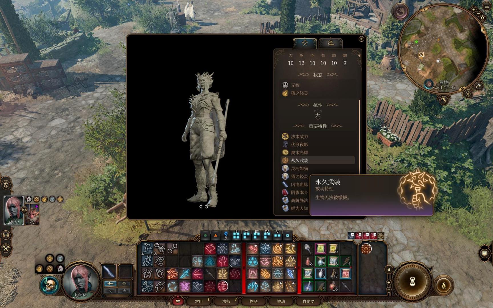 马戏团5000块的雕像也可以买一下,3号补丁后雕像复制武器已经被修复了,但买雕像给的永久祝福术对我们solo流程帮助很大。战斗豁免多个1D4很有价值,不然后面吃个控制就要暴毙。这个雕像小丑袭击马戏团后就不能买了,建议刚进马戏团时就拿下。