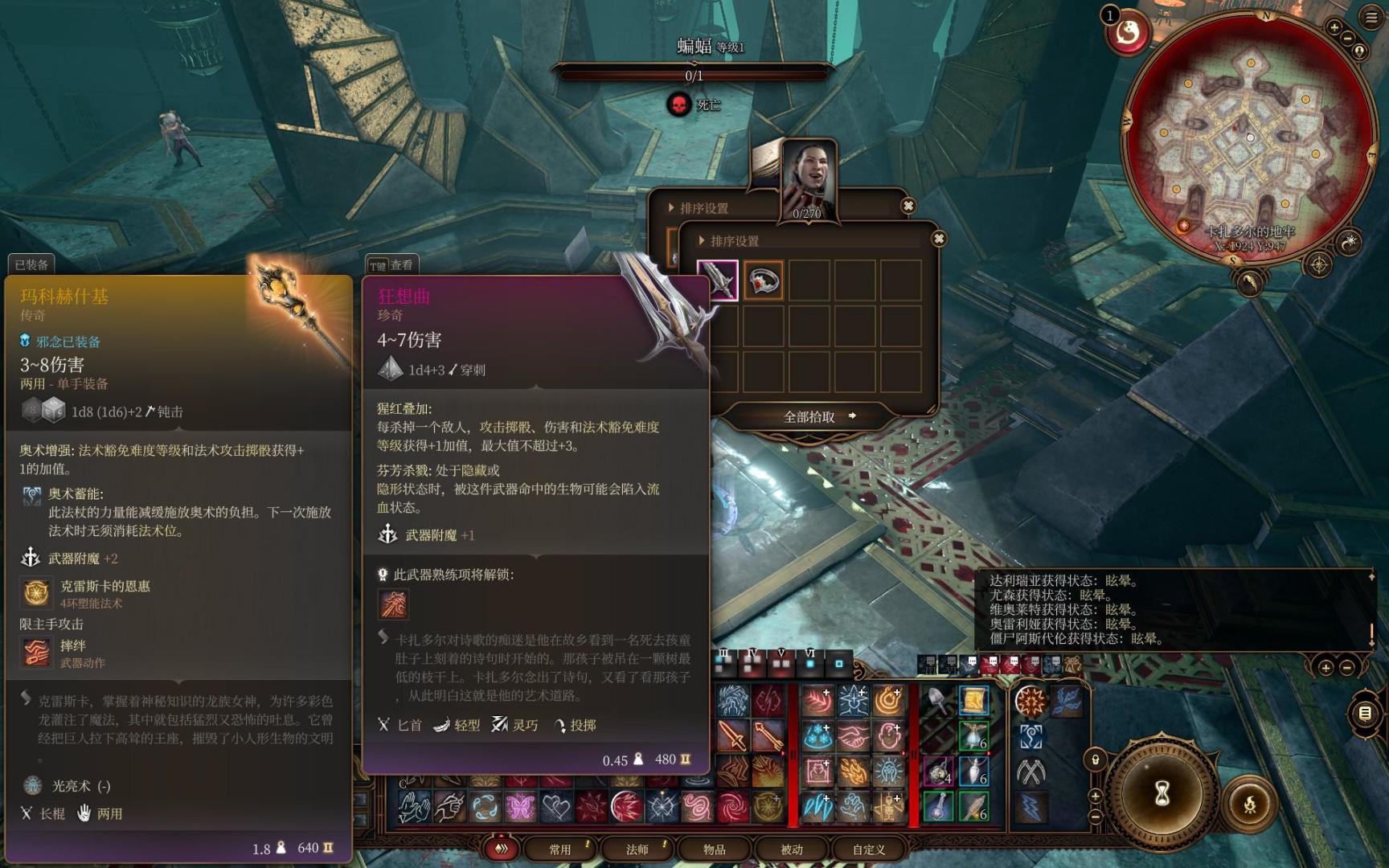 现在我们去吸血鬼卡扎多尔处拿最后一件装备,狂想曲可以给我们提供+3的DC加值,这样我们就能常驻25DC,没有传奇抗性的怪我们随便控。拿到全套装备后准备挑战拉斐尔,二号补丁按我们目前的战斗力,能百分之百控住它,但三号补丁对拉斐尔进行了巨幅加强,任何控制都只能控制它一回合。