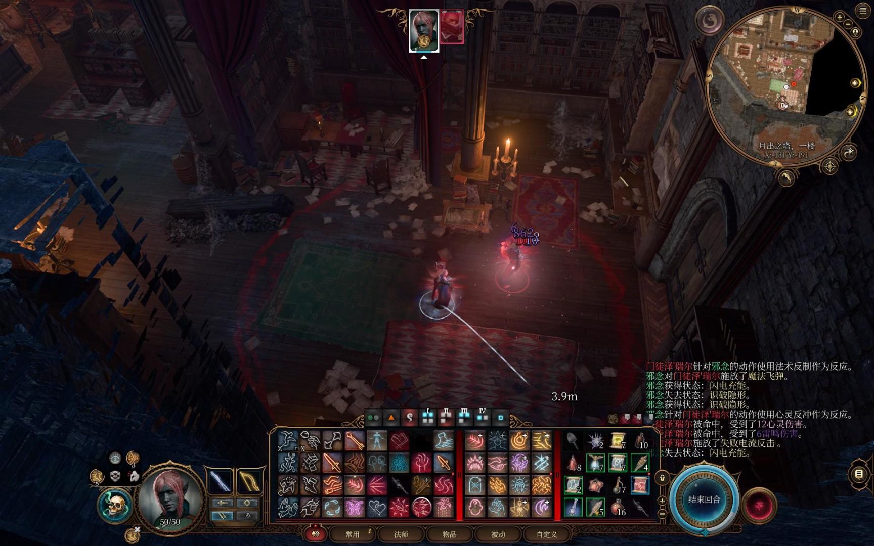 一层的守卫同样使用偷袭一点点蚕食,人员分散的就用升环法术飞弹点杀,聚在一起就用火球术。楼下厨房里还有一条夺心魔蝌蚪,解锁最后一个灵能。七进七出后月出之塔已经没什么活人了,我们也升到了九级,学习召唤元素生物和寒冰锥。