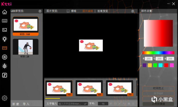 驱动这里啊我只能说是做的真的很一般,我不想多说,珂芝的驱动能用就行其实,嗯,但是这个gif图片是支持一个一百多帧的,这个有意思啊,正常情况下了来说一秒是24帧,也就代表着我们可以放一张7秒钟的gif在上面,这里是不错的