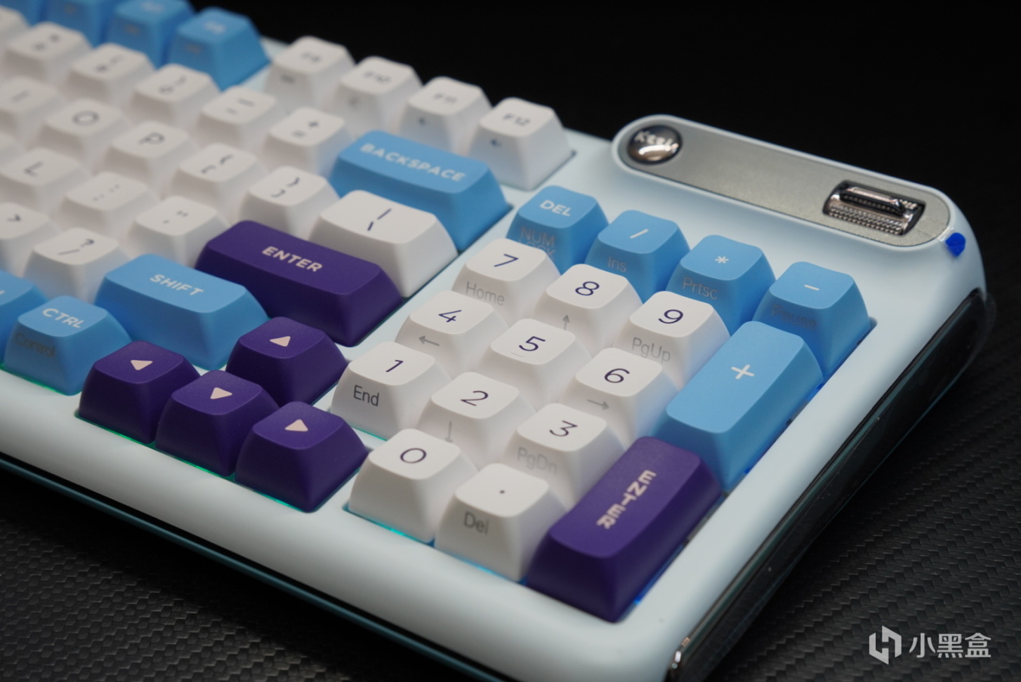首先来看键盘数字区域,由于键盘的小屏幕遮挡住了键盘的功能区,导致了键盘的del之类的功能键没有了,所以呢这里了侧刻的印刷,让你可以通过快捷键的方式进行使用(但是有一说一吧,像我打游戏的时候地图取消标点如果让我用组合键的方式的话我觉得很麻烦的)