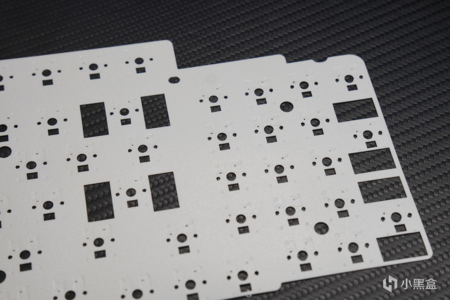 将键盘拆解之后可以看见键盘采用的是pc定位板,并且进行了开槽的设计,这可以让键盘的软弹更加的好,手感更加的一致。