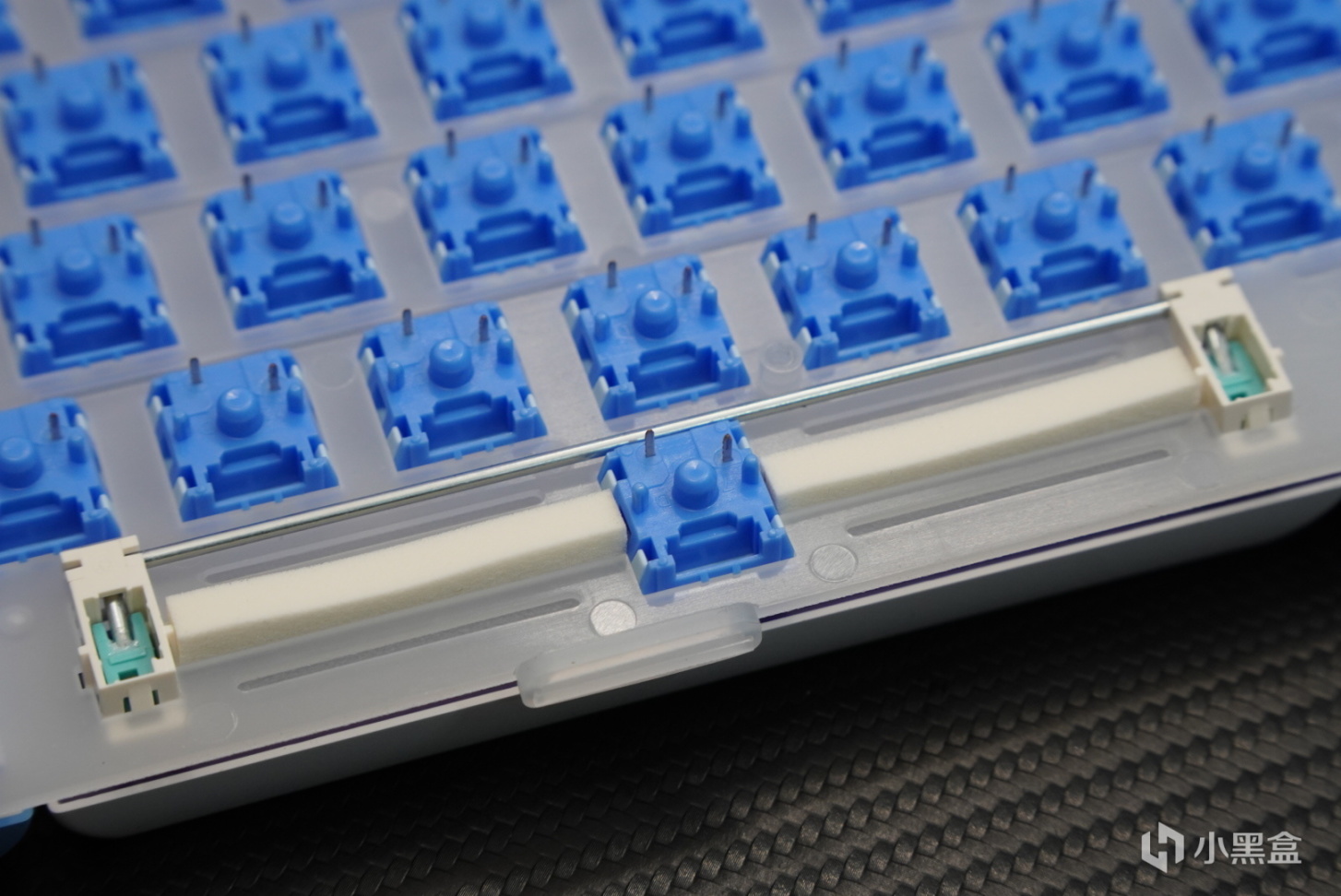 键盘空格位置进行了填充,设置了消音棉条,让键盘的空格声音更加的小。
