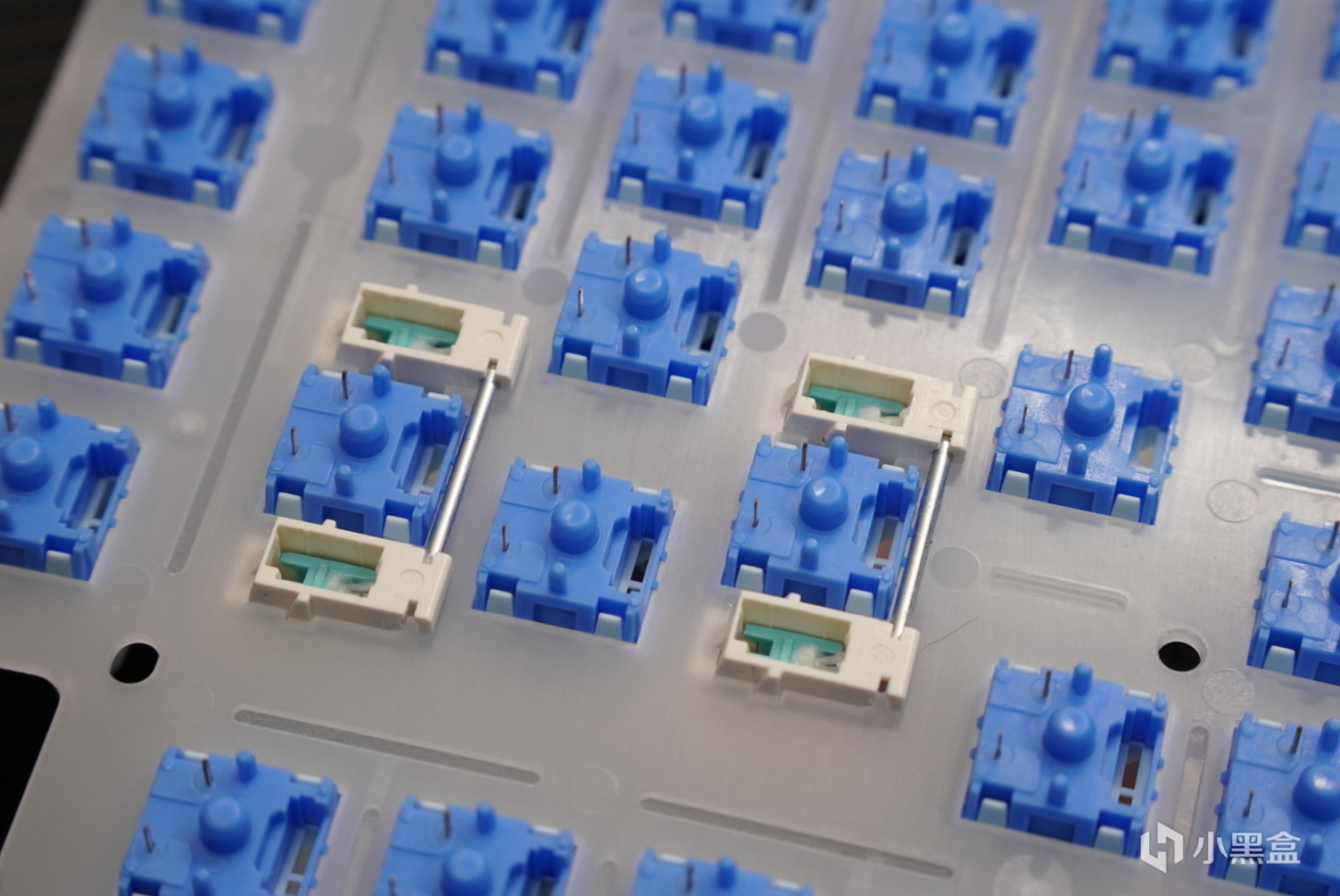 轴下垫这里采用的是ixpe材质的轴下垫,经常看我稿子的朋友可以知道,我是很喜欢这种填充材质,这个轴下垫并且在卫星轴对应的位置给你开了卫星轴的空位,防止卫星轴触底那一下肉肉的。